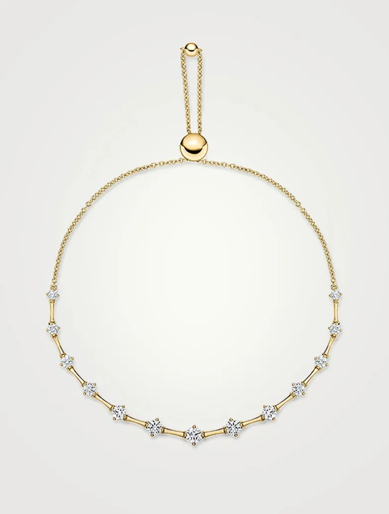Stationed with round sparkling diamonds, this adjustable bracelet features a clasp that slides up and down for a custom fit.