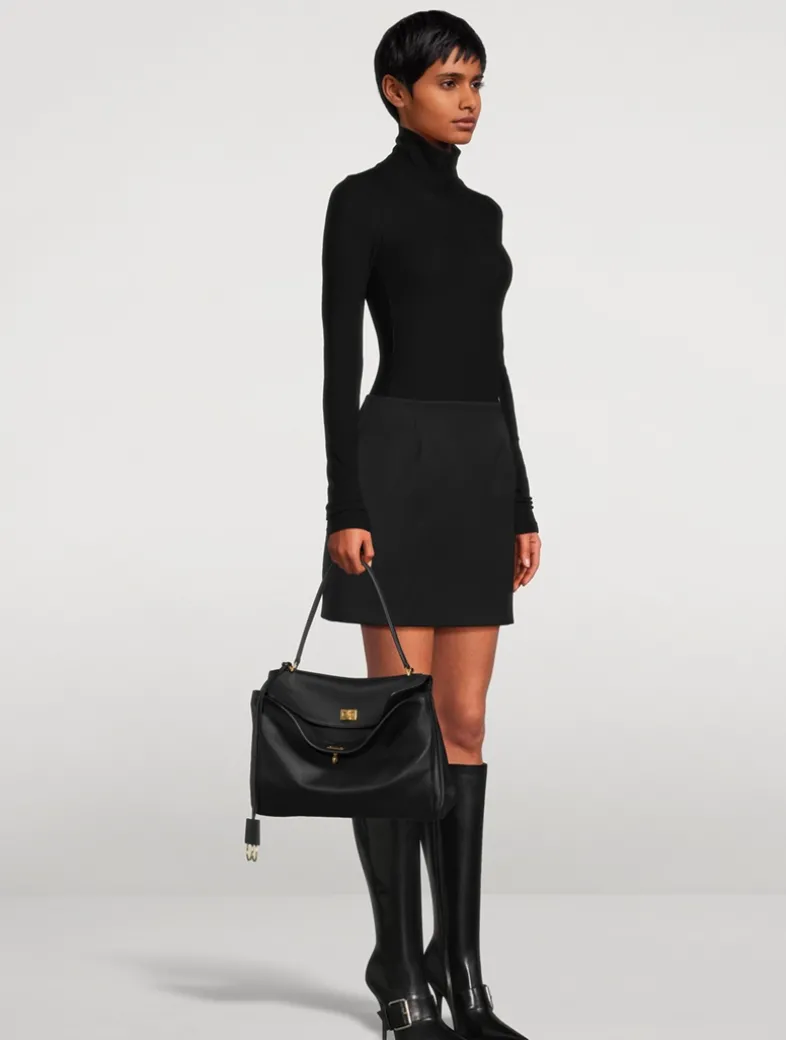 A buttery leather construction and side snaps enhances the slouchy shape of this bag. Roomy enough for you daily essentials, the satchel features one main compartment, one inner zipped pocket, and two flat pockets at the back.