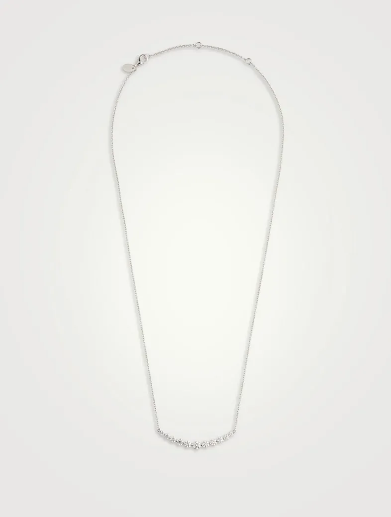 Skillfully crafted in 18k gold, this adjustable chain necklace features a curved bar of graduating diamonds.