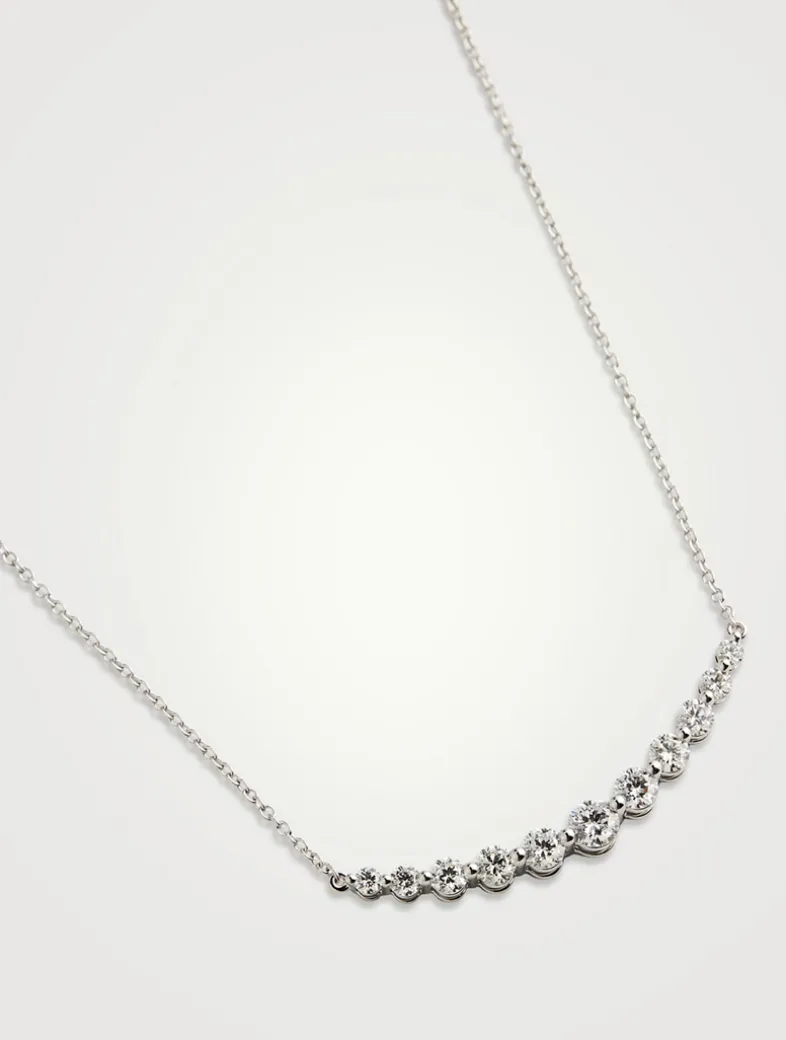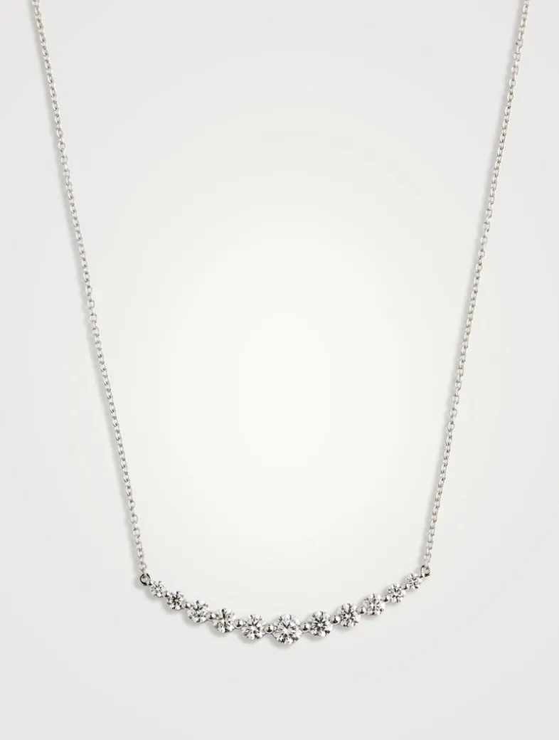 Skillfully crafted in 18K gold, this adjustable chain necklace features a curved bar of graduating diamonds.