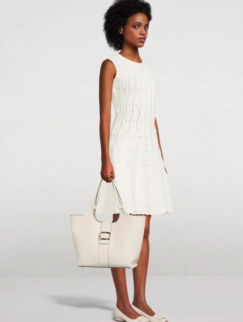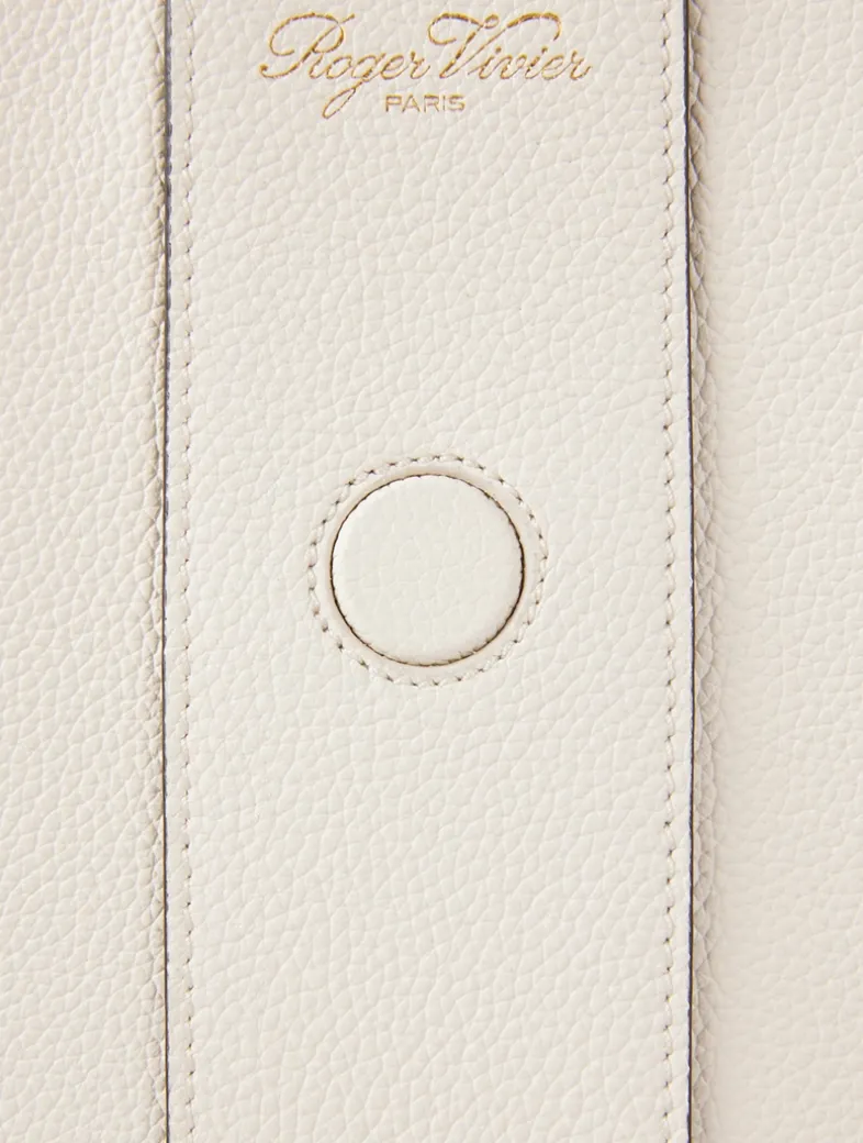 The Viv’ Choc shopping bag is bound to become a new icon of the Maison. Characterized by the homonymous metal buckle with its distinctive rounded shape, the medium version is here crafted in hammered-effect leather. Featuring an adjustable compartment and two practical handles, it is a refined partner for the contemporary Vivier customer.
