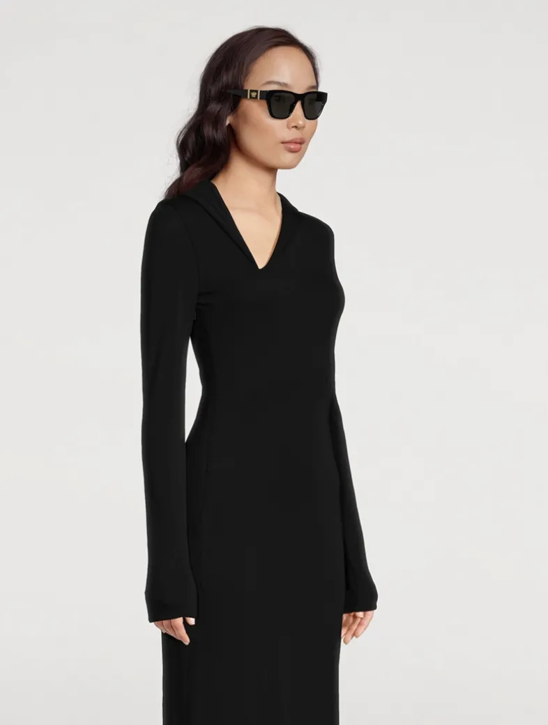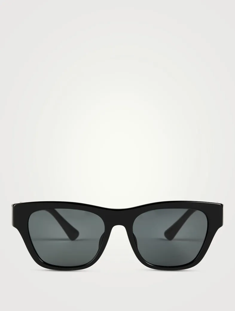 Elegant squared sunglasses with acetate frames, accented by a Medusa emblem at the temples.