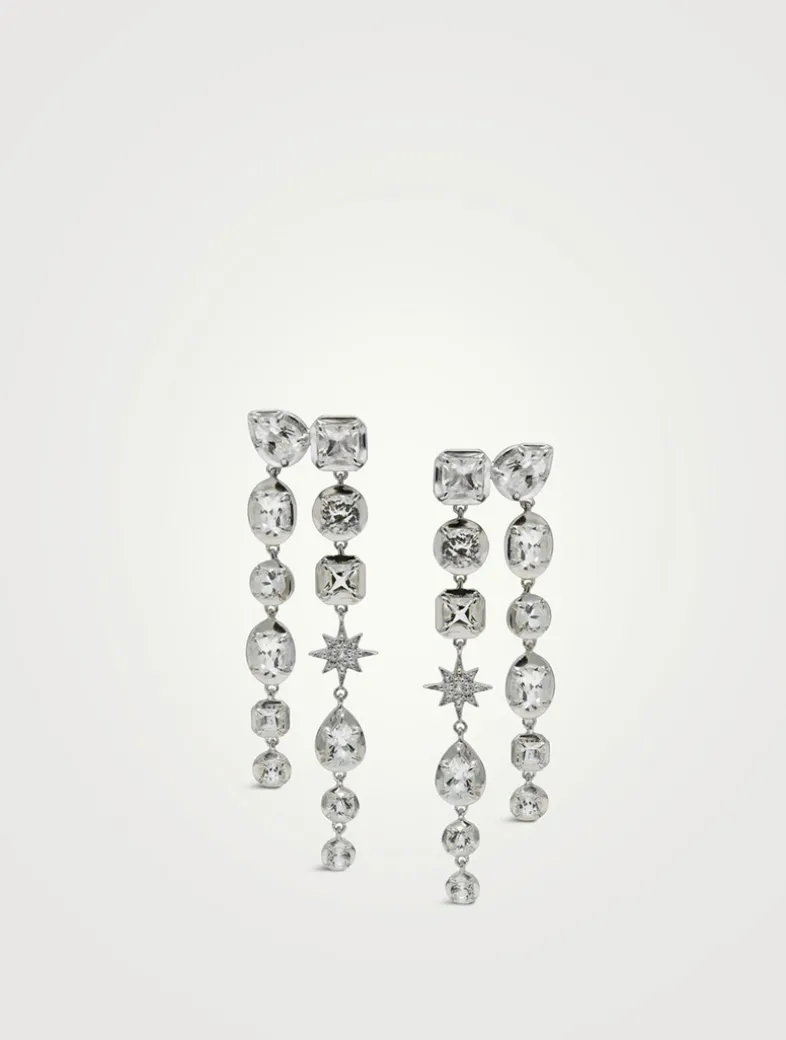 Set with sparkling topaz gemstones and white sapphire pavé stars, these spectacular earrings are mounted on a post for ease of wear. The sterling silver setting perfectly suits the clear gemstones.