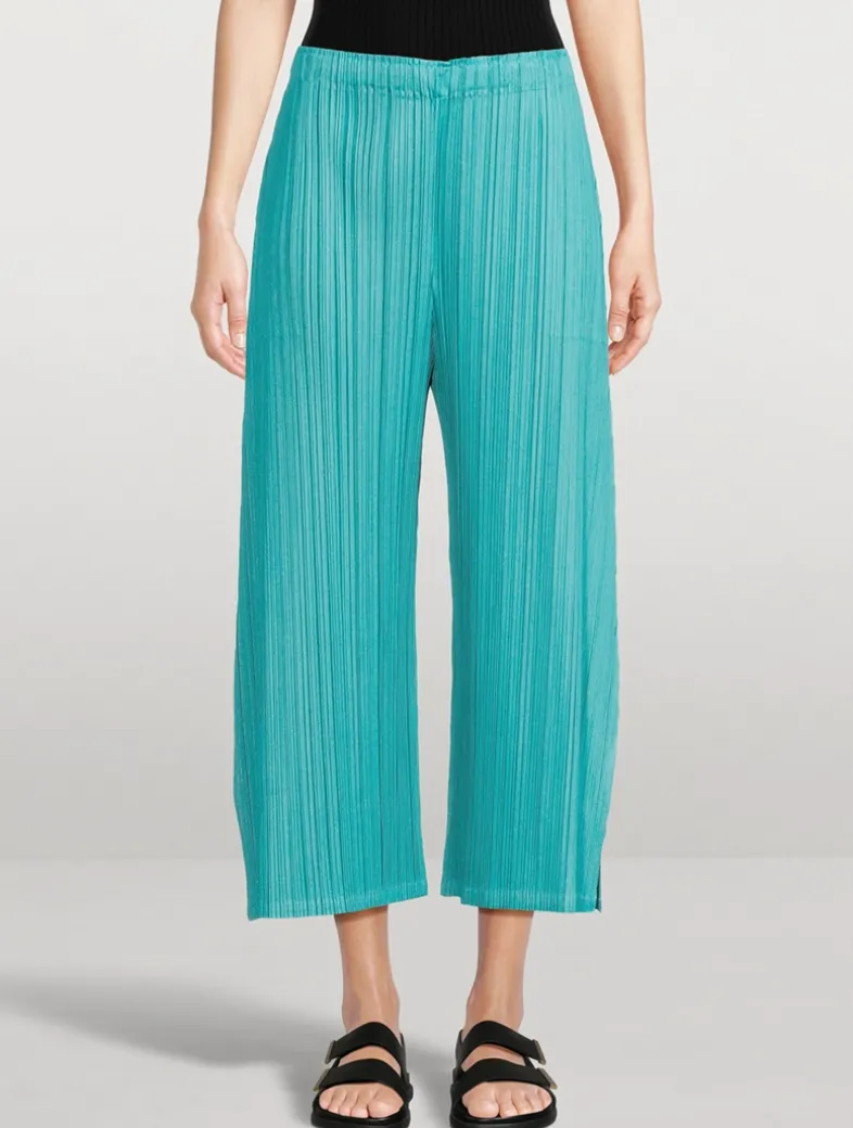 The elegantly flared silhouettes of Mellow Pleats are made from a soft, matte fabric. These cropped, wide-leg pleated trousers have an elasticated waistband, side pockets, and slits.
