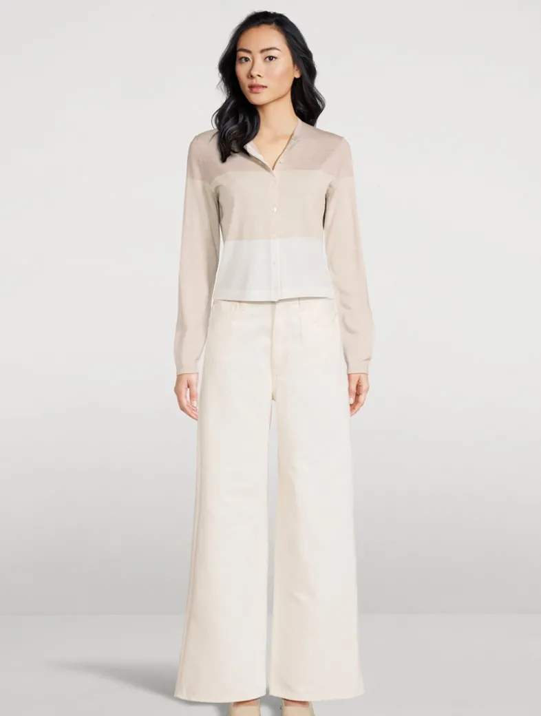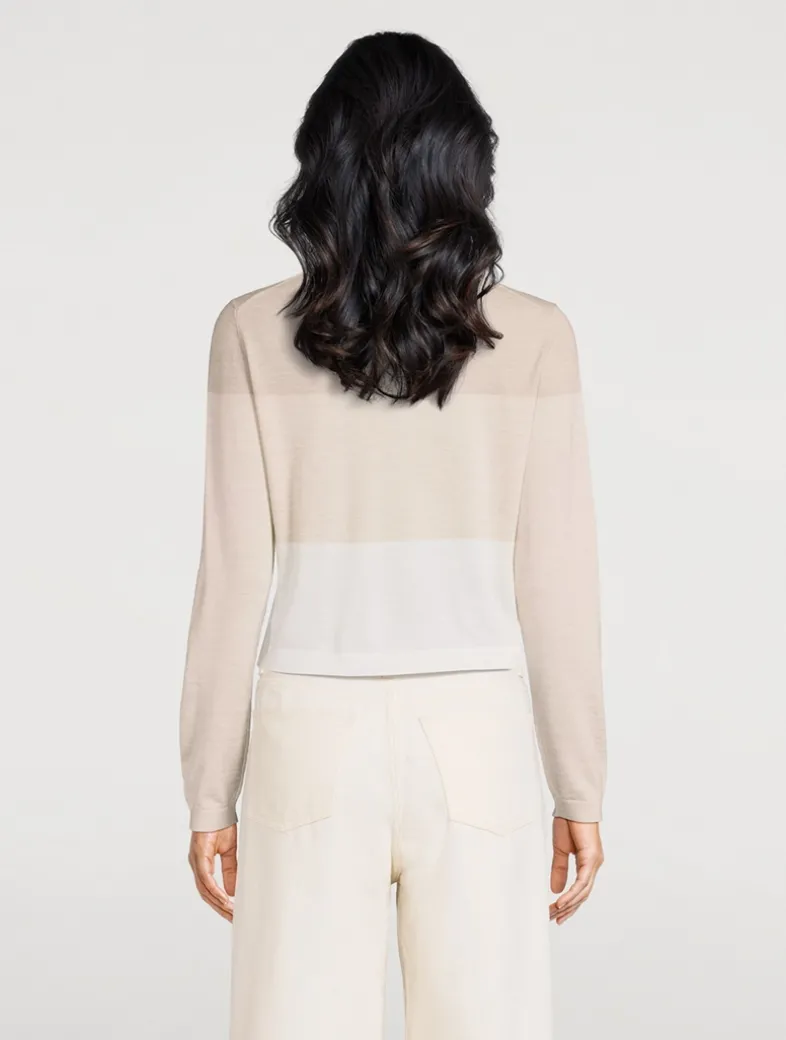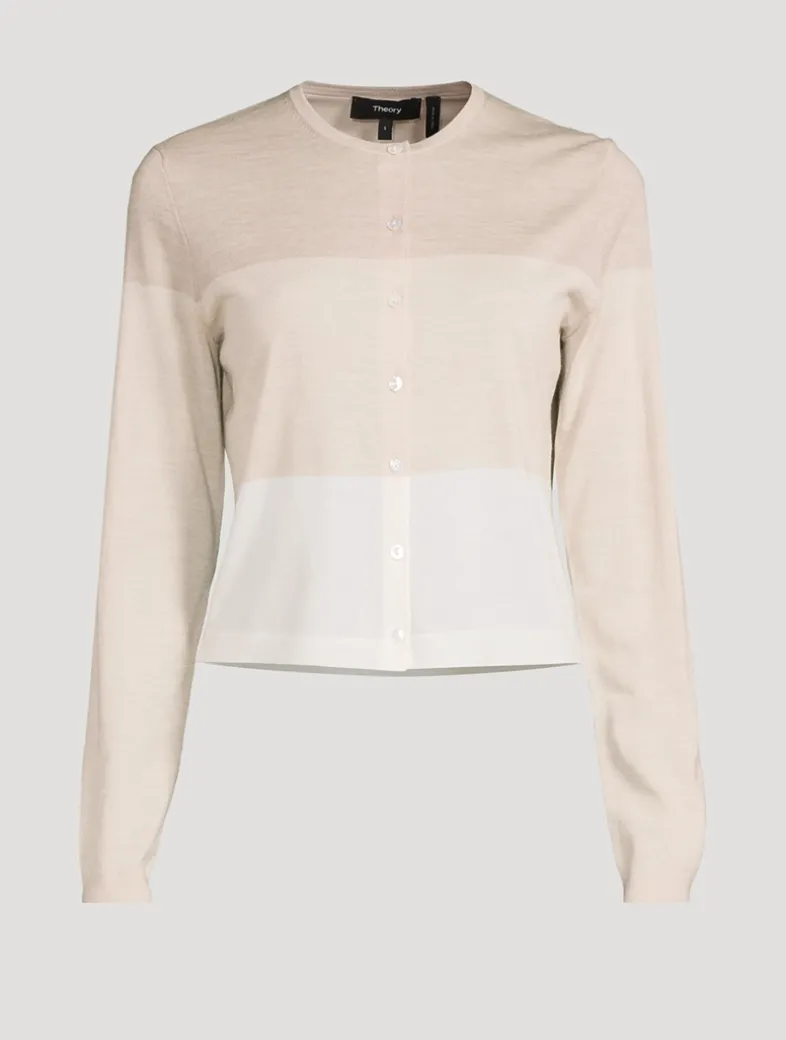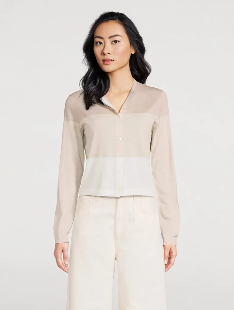 Knit from an ultra lightweight merino wool, this long-sleeve cardi has a tonal colourblock design and a slim fit.