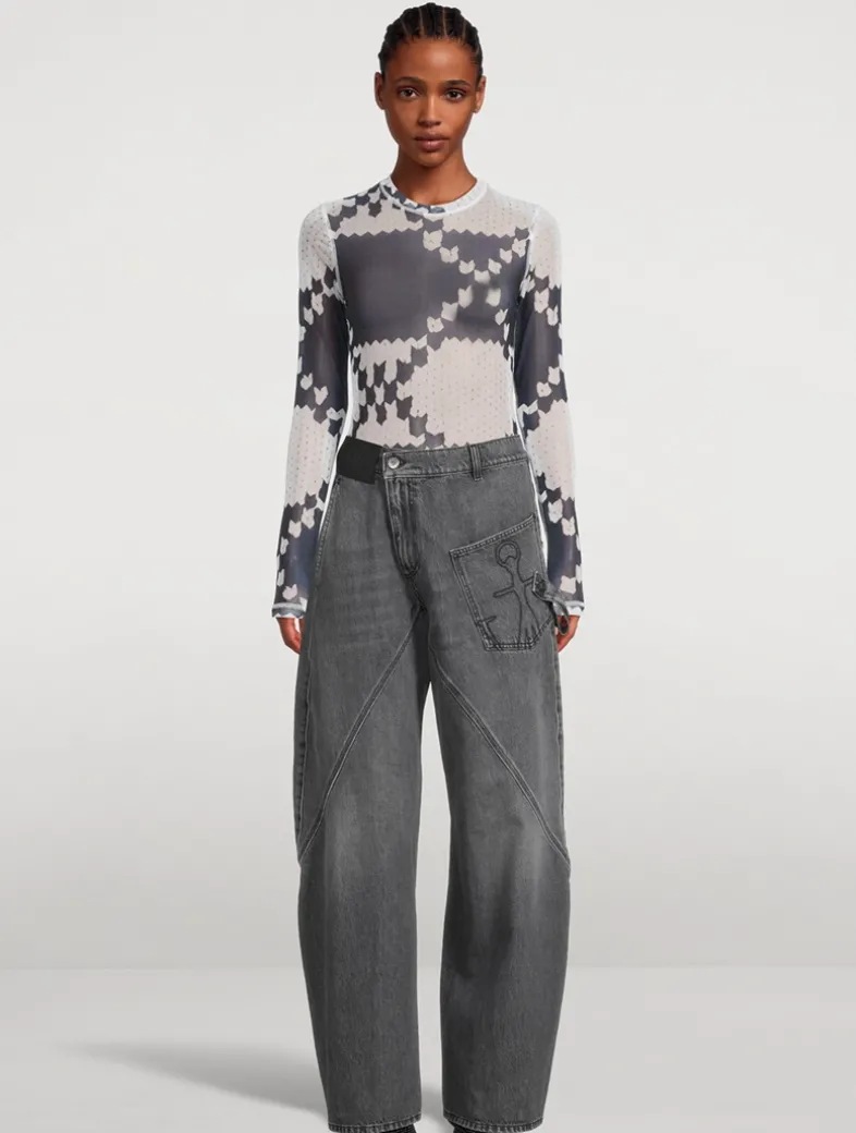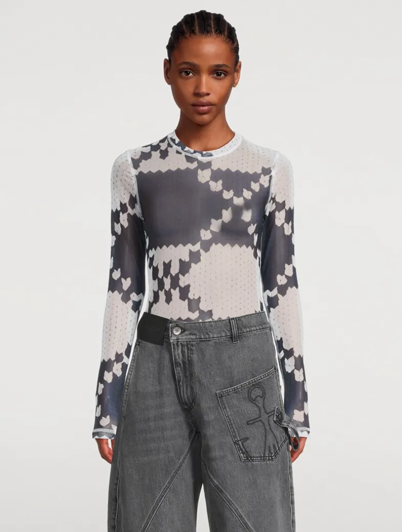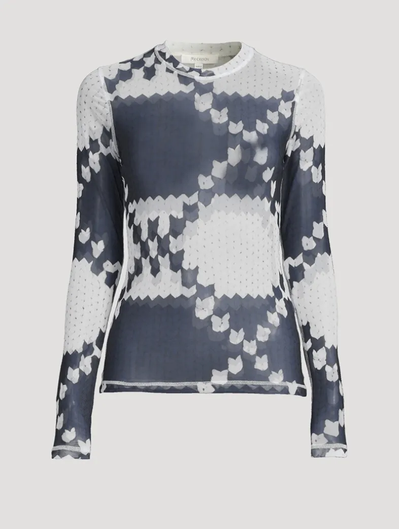 An abstract artwork print, reminiscent of a modern Fair Ilse motif, lends a graphic touch to this long-sleeve crewneck. Made in Portugal, it is crafted of a semi-sheer mesh with a fitted silhouette.