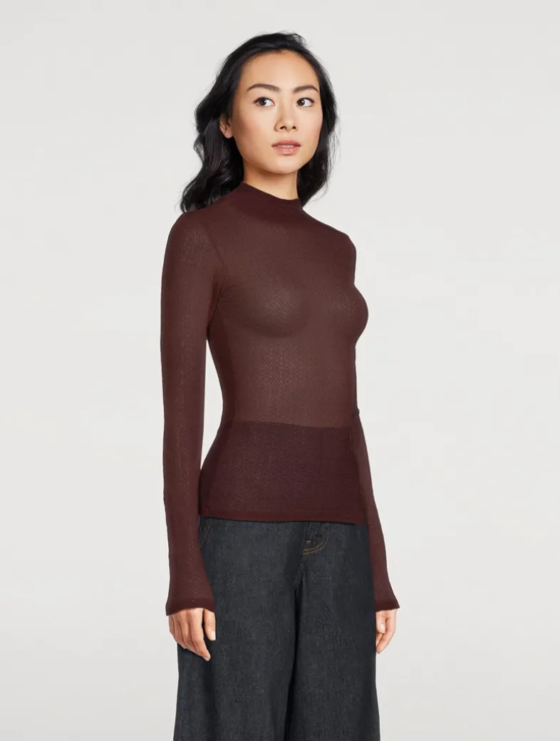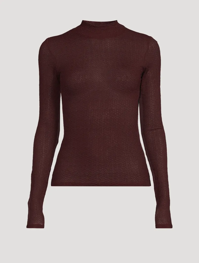 Cut to an ultra-flattering fit, this mockneck top is a sophisticated layer in a sultry, small grain lace mesh.