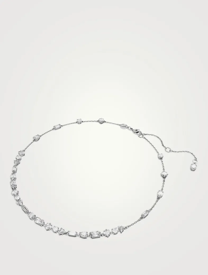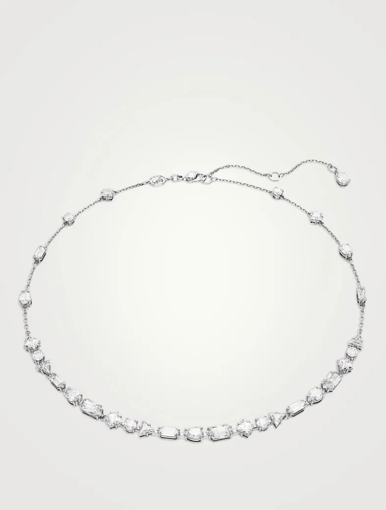 A scattering of mixed cut stones frames your face and draws the eye upward. Part of the Mesmera collection, this graduated station necklace create an fascinating look that’s worthy of a double-take.