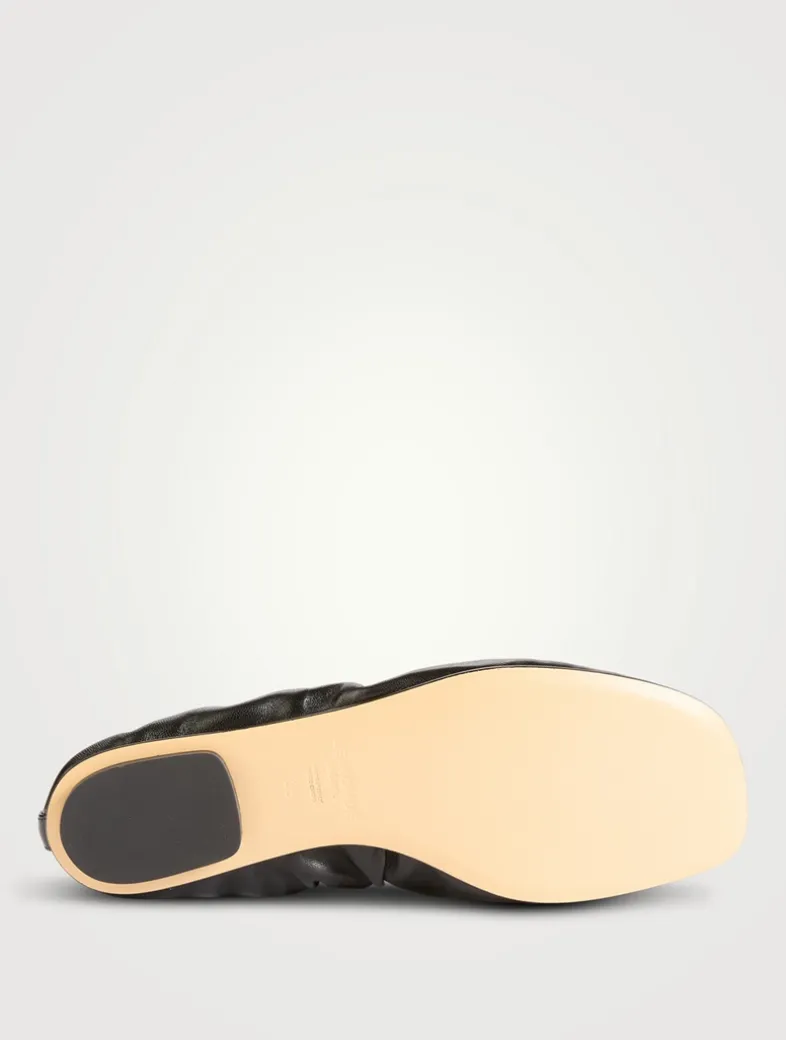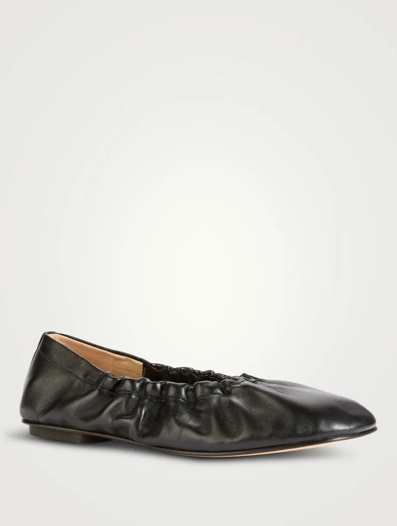 The Mica Flat in buttery leather is detailed with an elasticated back and cushioned calf leather insole. Made in Italy.