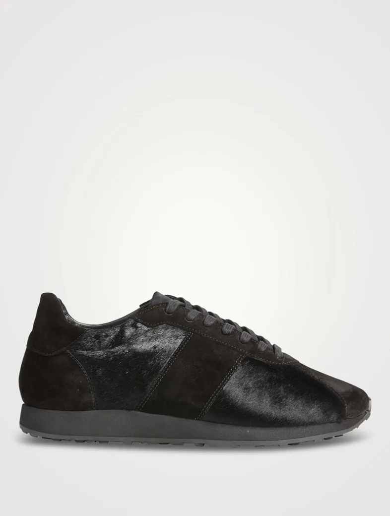 A luxe take on a sporty style, these deconstructed sneakers are made in a mix of in soft suede and plush ponyhair with raw-edge finish. This low-top pair feature a cushioned sole with micro rubber tread for added comfort.