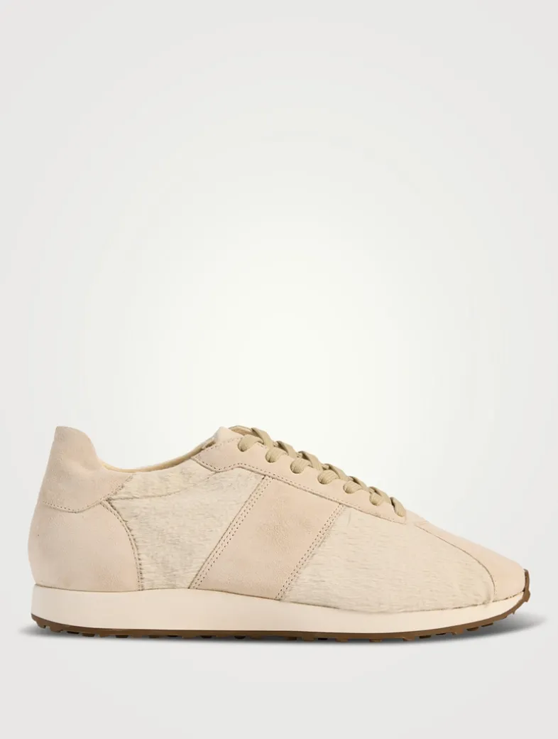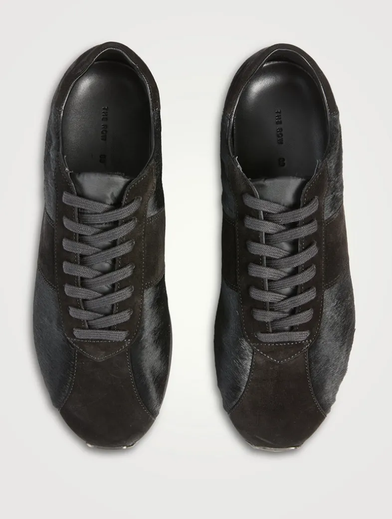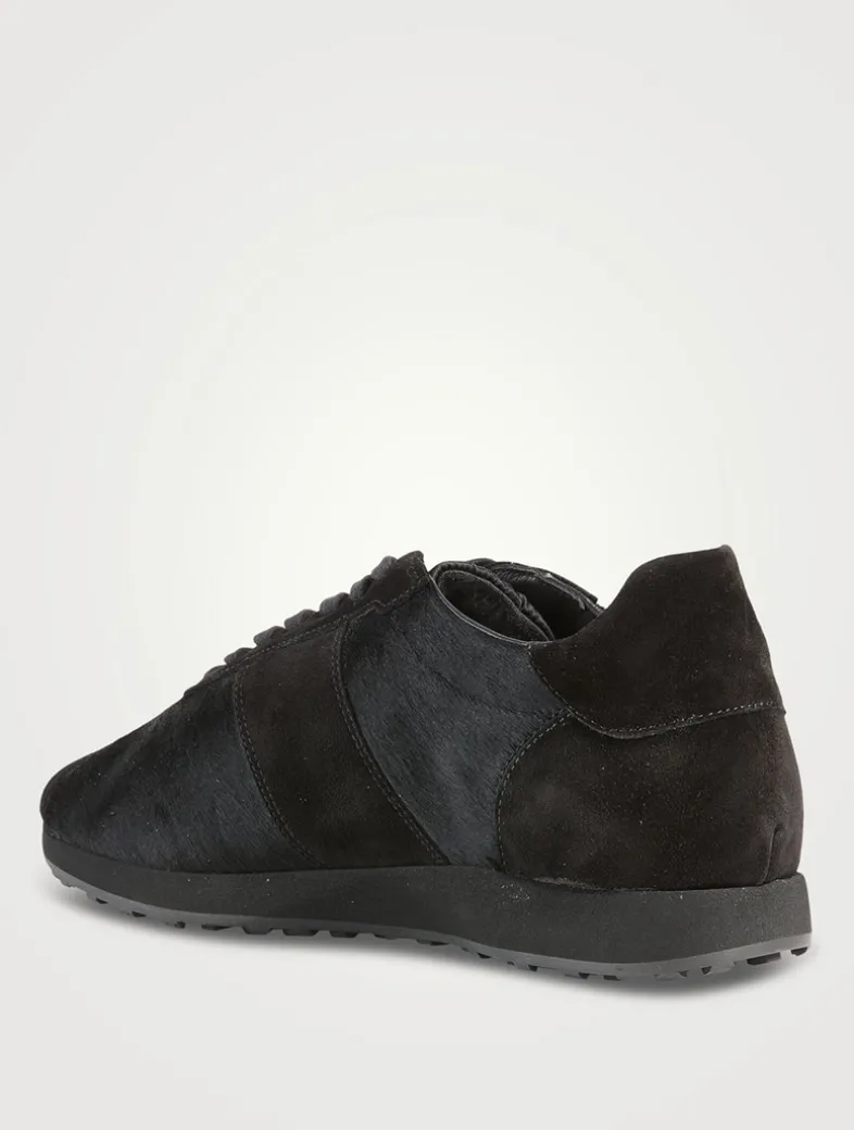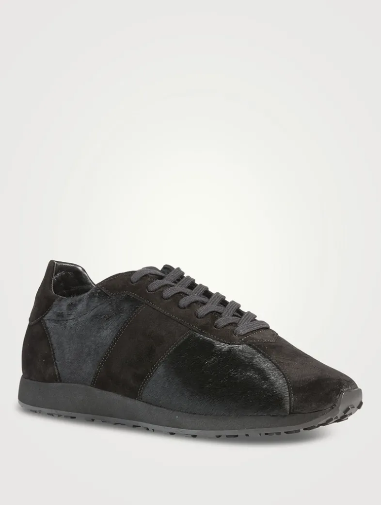 A luxe take on a sporty style, these deconstructed sneakers are made in a mix of in soft suede and plush ponyhair with raw-edge finish. This low-top pair feature a cushioned sole with micro rubber tread for added comfort.