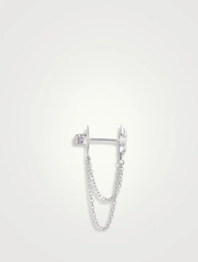 Inspired by both Southwestern and Art Deco influences, the Aztec collection showcases spikes, trillion-cut gemstones and starburst motifs. Featuring starburst studs with white topaz centres, the front and back of these drop earrings are connected by a diamond-cut chain.