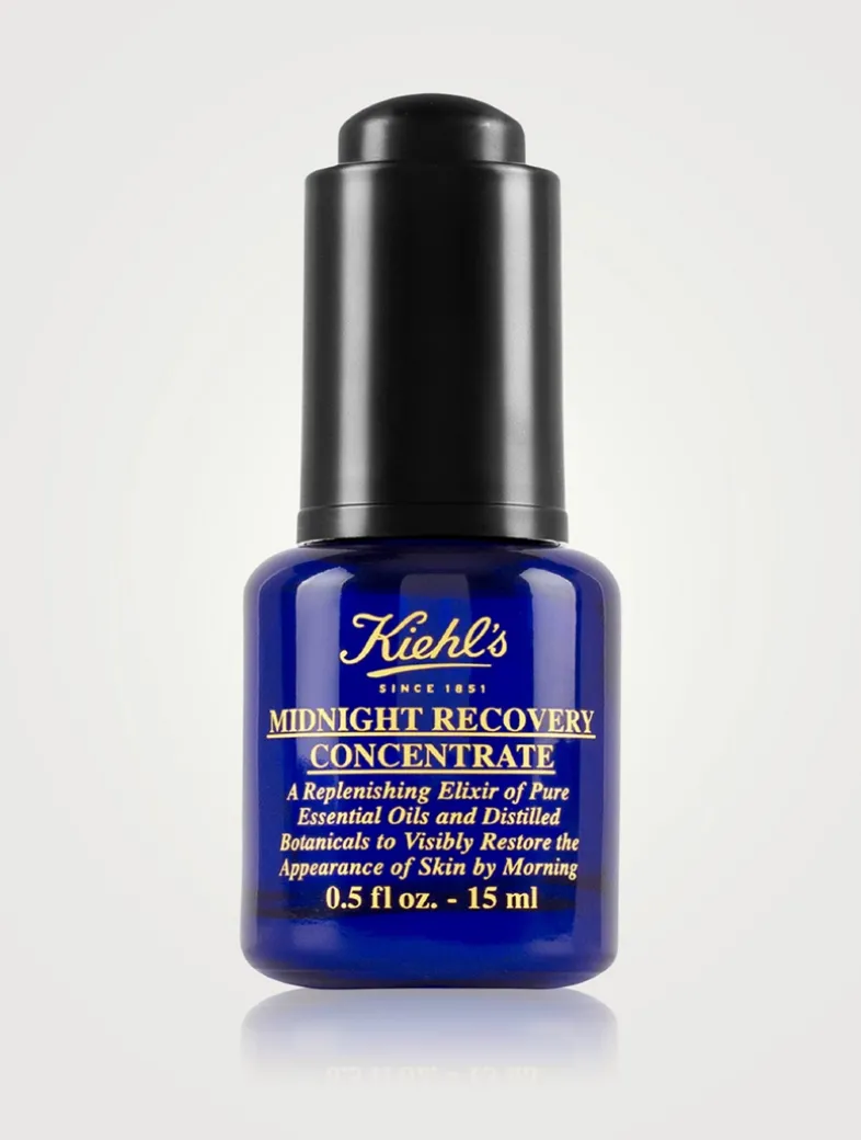 Kiehl’s Midnight Recovery Concentrate is a lightweight, readily-absorbed elixir that effectively restores skin’s healthy appearance overnight, resulting in smoother, more radiant complexion by morning. Enriched with Squalane, a botanical lipid similar in molecular structure to natural skin lipids, and Evening Primrose Oil, rich in Omega-6 Fatty Acids, it delivers essential moisture to depleted skin. These naturally derived oils instantly penetrate the skin’s surface to help replenish it. This concentrate works at night when skin is most receptive to repairing itself from daily aggressors. With skin hydrated, supple and soft, rest assured you can say goodnight to tired-looking skin.