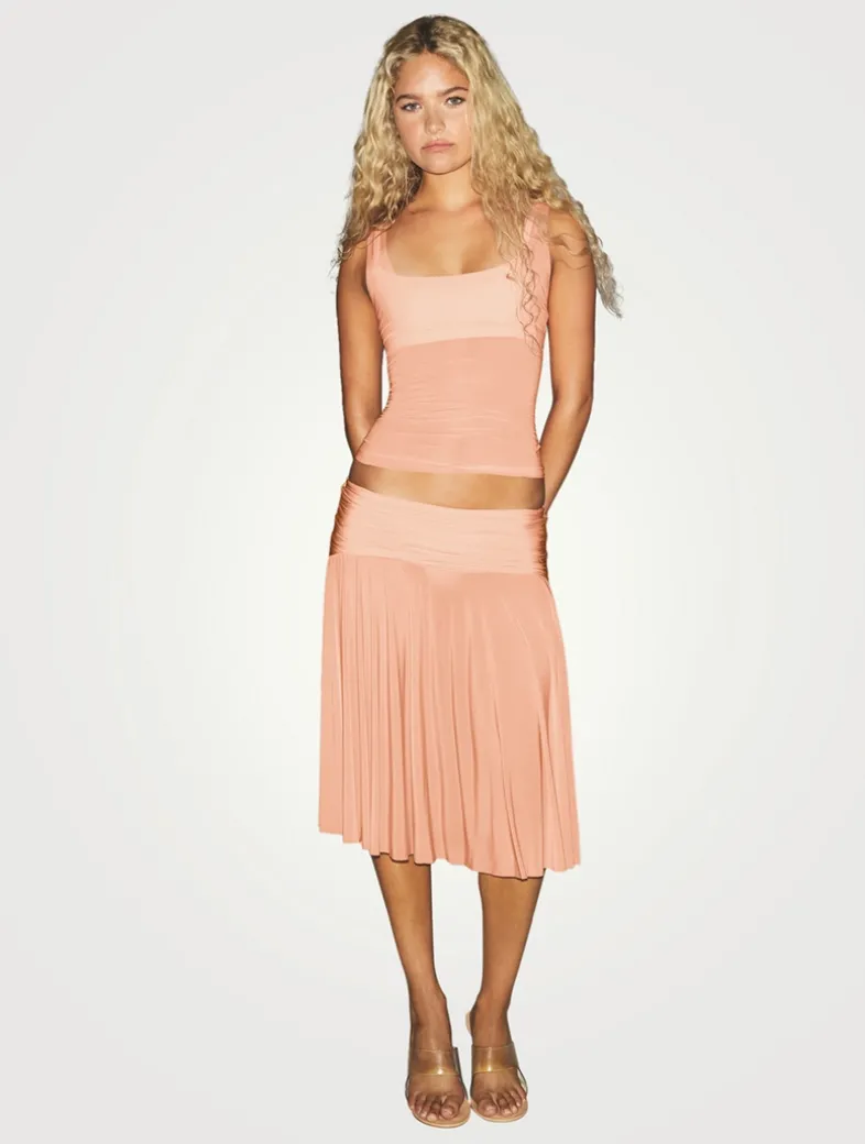 Summer’s sheer essential. This body-hugging tank is designed in SKIMS’ lightweight Milky Sheer fabric for a sexy, chic look. Features a scoop silhouette in the front and back and raw-cut details. Fits true to size.