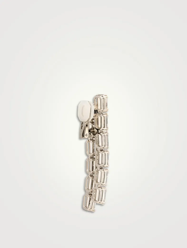 Crafted with rhodium plating these cascading clip earrings feature a double drop of clear octagon-cut crystals.