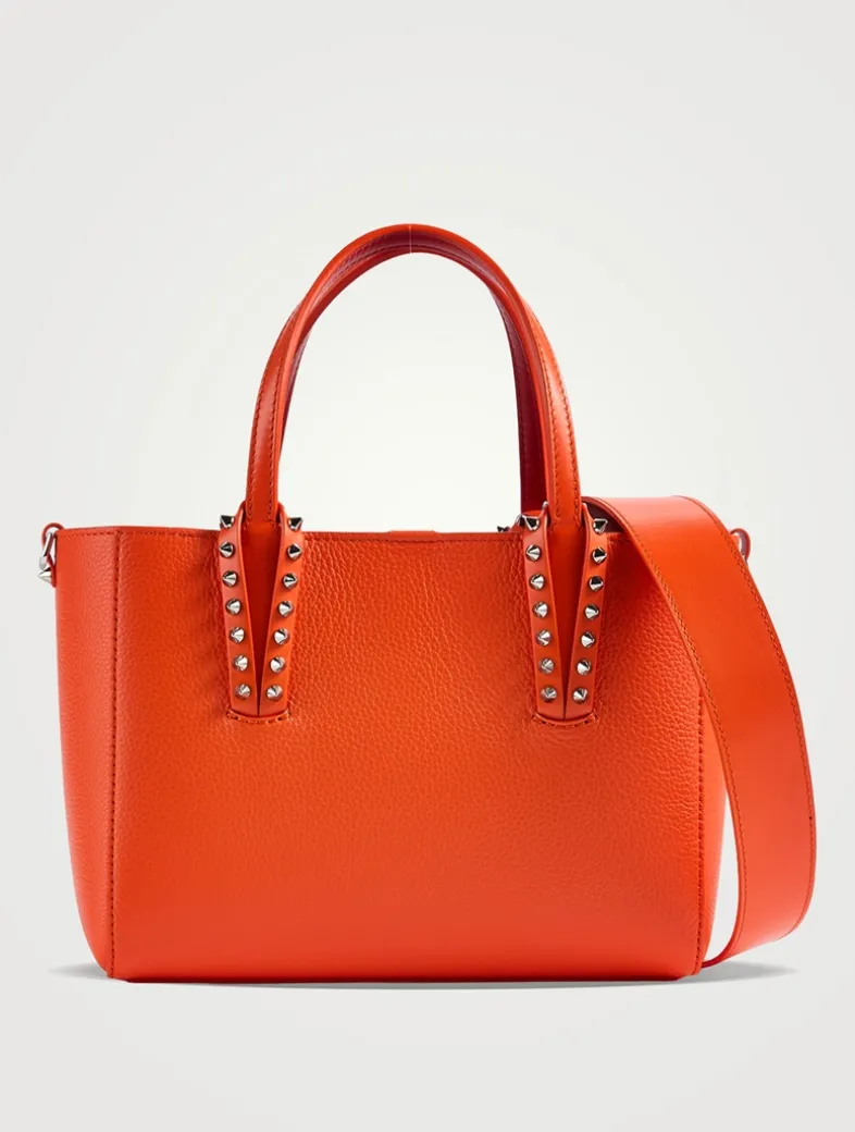 With its supple construction, the Cabata zipped tote showcases Maison Christian Louboutin’s savoir faire. This model features the hallmarks of the iconic Cabata tote: signature spikes encircling the handles and Loubi red lining. It is crafted in grained calf leather and fastens with a clasp.