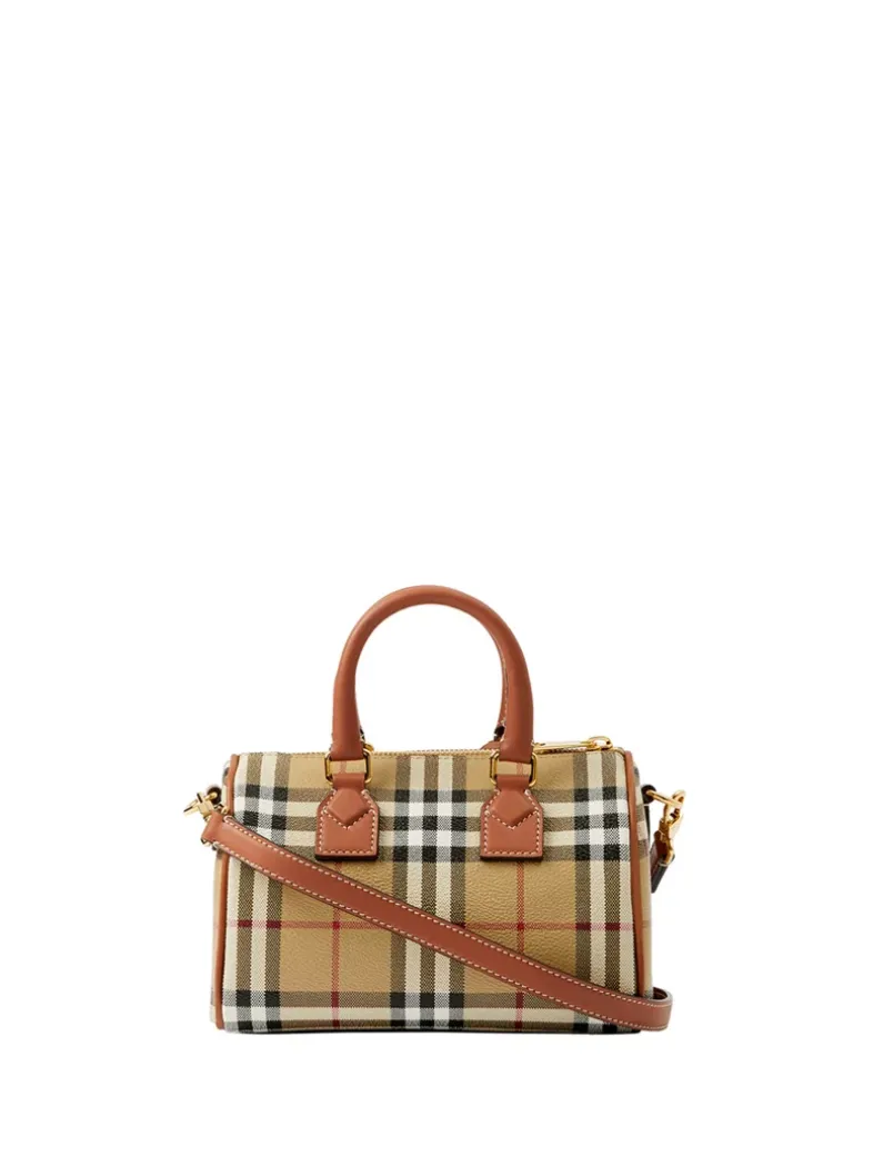 A bowling bag made in Italy from Burberry Check and lined in cotton. The compact design is trimmed in smooth calf leather and features a leather-wrapped padlock and key.
