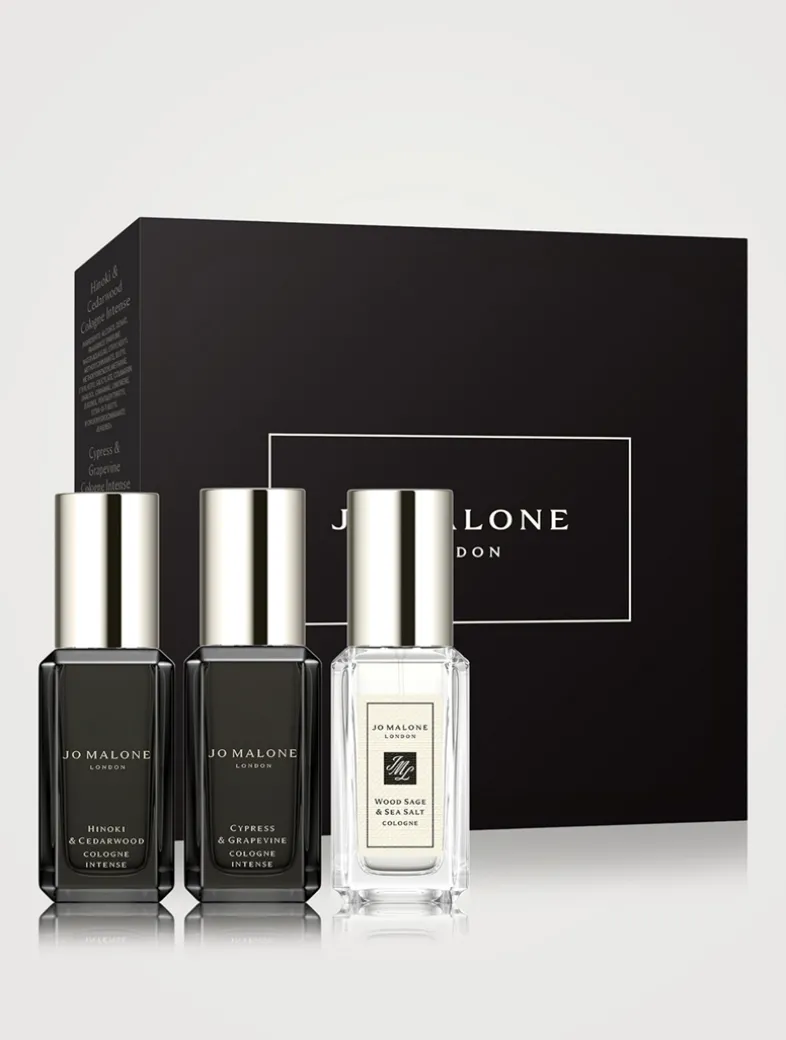 Indulge in this Limited Edition Mini Cologne Intense & Cologne Set. Experience the intensely fresh and distinctive scent of Hinoki & Cedarwood, the aromatic allure of Cypress & Grapevine, and the salty, inviting notes of Wood Sage & Sea Salt. Perfect for layering or enjoying individually.