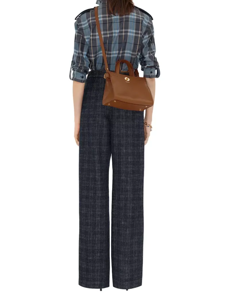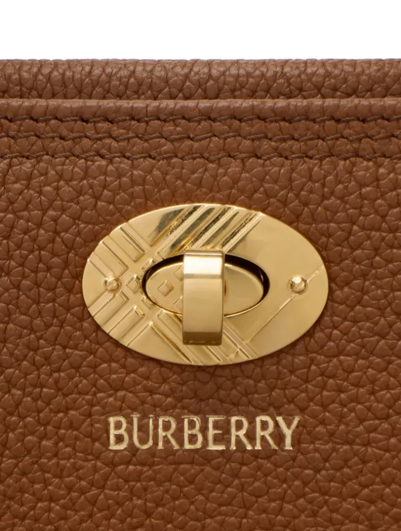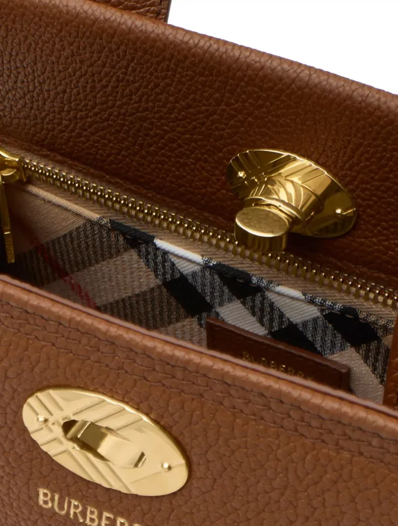 A timeless tote made in Italy from grainy calf leather, lined in a cotton blend woven with the Burberry Check in our signature sand colourway. The compact style is detailed with a check-engraved closure and D-ring hardware inspired by the belt from our iconic trench coats. Carry in hand or as a shoulder bag using the strap.
