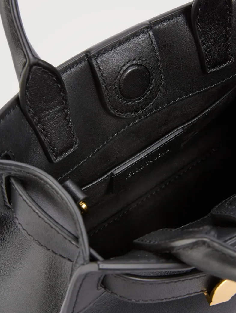 Crafted from luxe leather with an adjustable belted strap, this small handbag is designed with both a structured top handle and a removable shoulder strap for maximum versatility. An interior zip pocket and magnetic closure ensure convenience and ease.