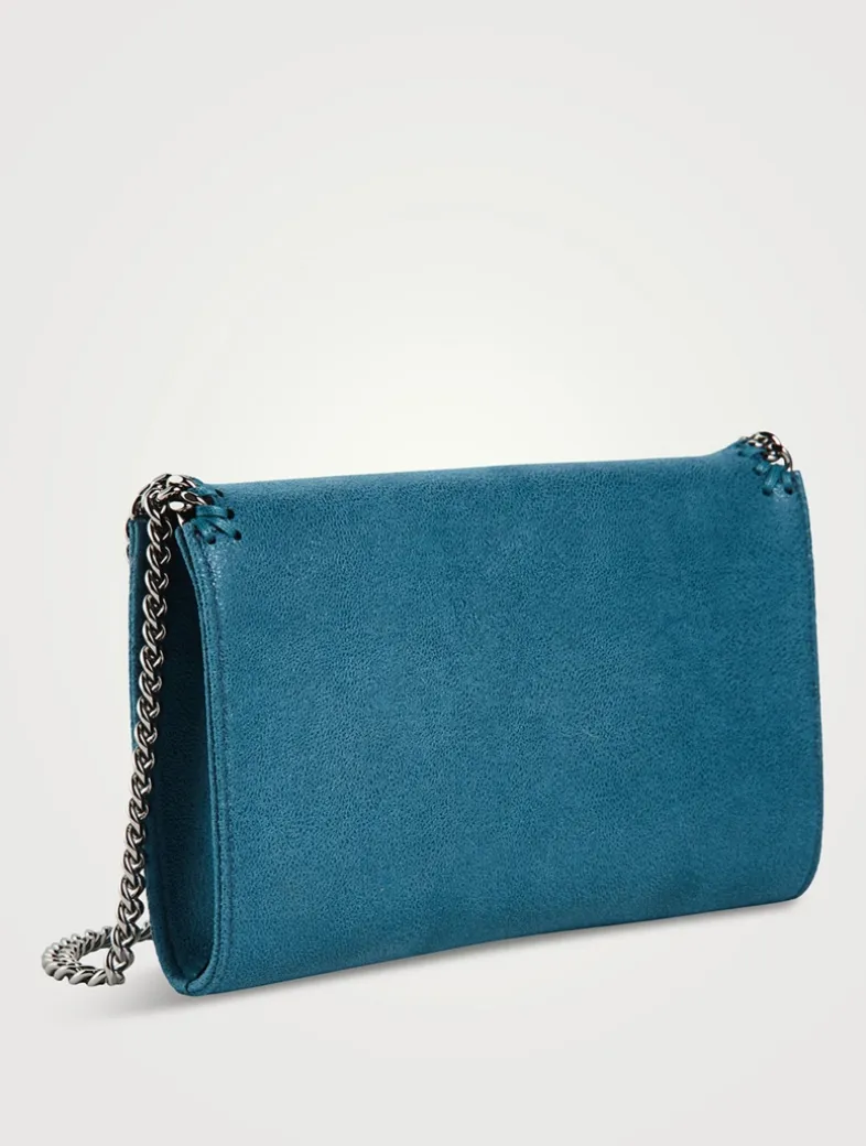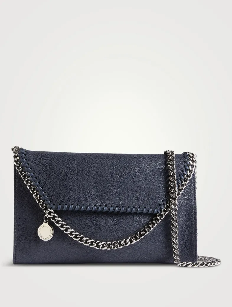 A signature STELLA MCCARTNEY style, the Falabella bag’s minimalist shape is updated in a crossbody silhouette with a curb chain shoulder strap. Accented with whipstitching and an engraved logo charm, this flap bag features one slip pocket inside.