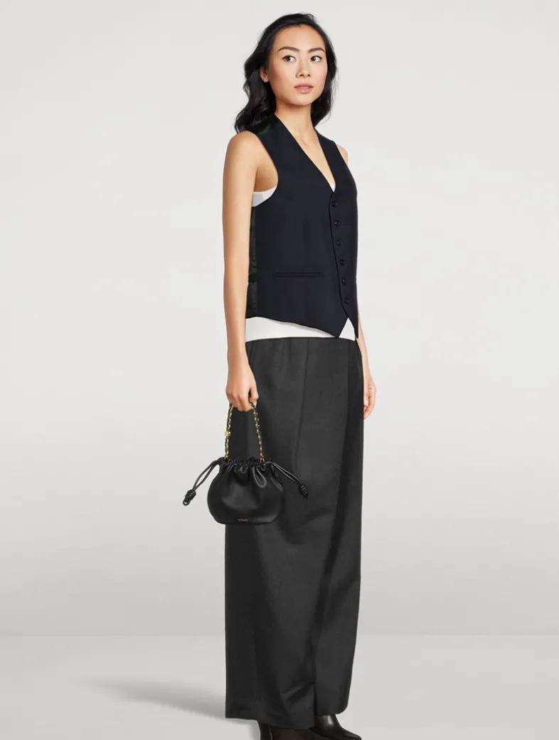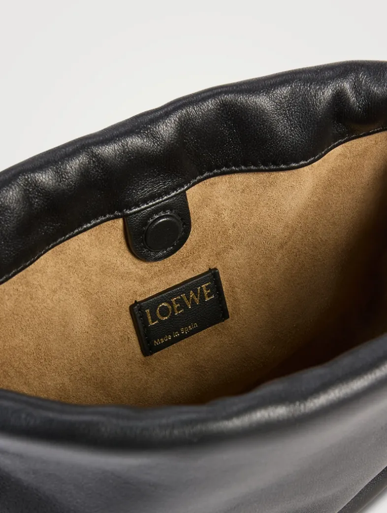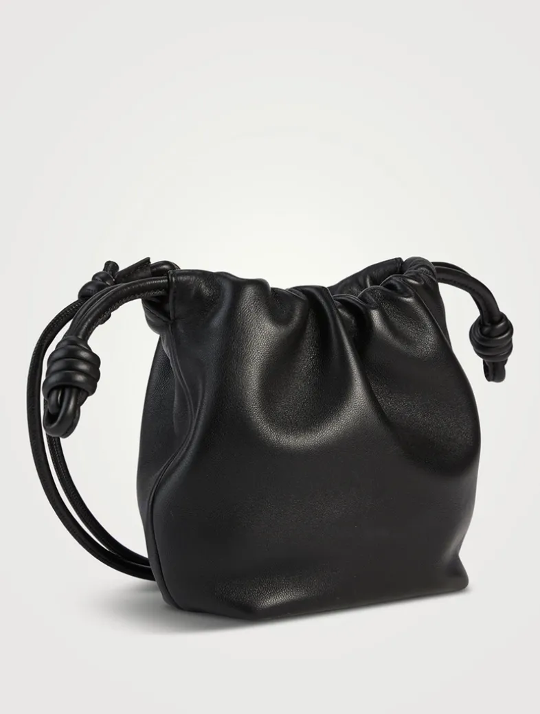 The Flamenco Purse is defined by a ruched design inspired by the line’s aesthetics, with key details such as the signature knots at the sides and the donut chain. This mini version is crafted in mellow nappa lambskin with a suede lining.