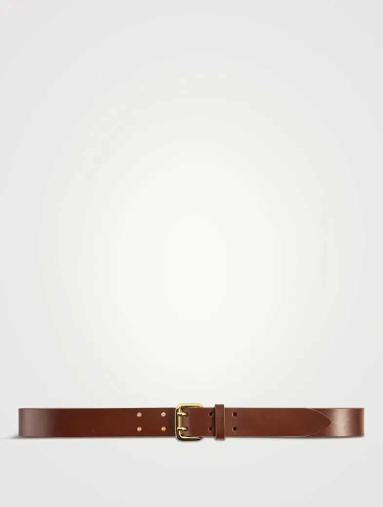 Crafted in Italian calfskin with a signature sculptural buckle, this sleek belt is a minimalist essential. With a belt height of 1 inch, this silhouette fits most belt loops. Leather sourced from Italy and certified by the Leather Working Group (LWG). With a double-pronged buckle and 5 belt holes, this belt provides standard sizing intended for both waist and hip wear.