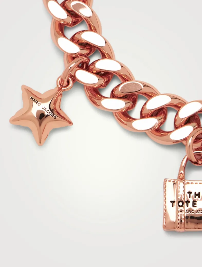 With charms designed after their signature tote bag and more, this adjustable bracelet features the iconic Marc Jacobs styles reimagined into dainty charms along a thick curb chain.