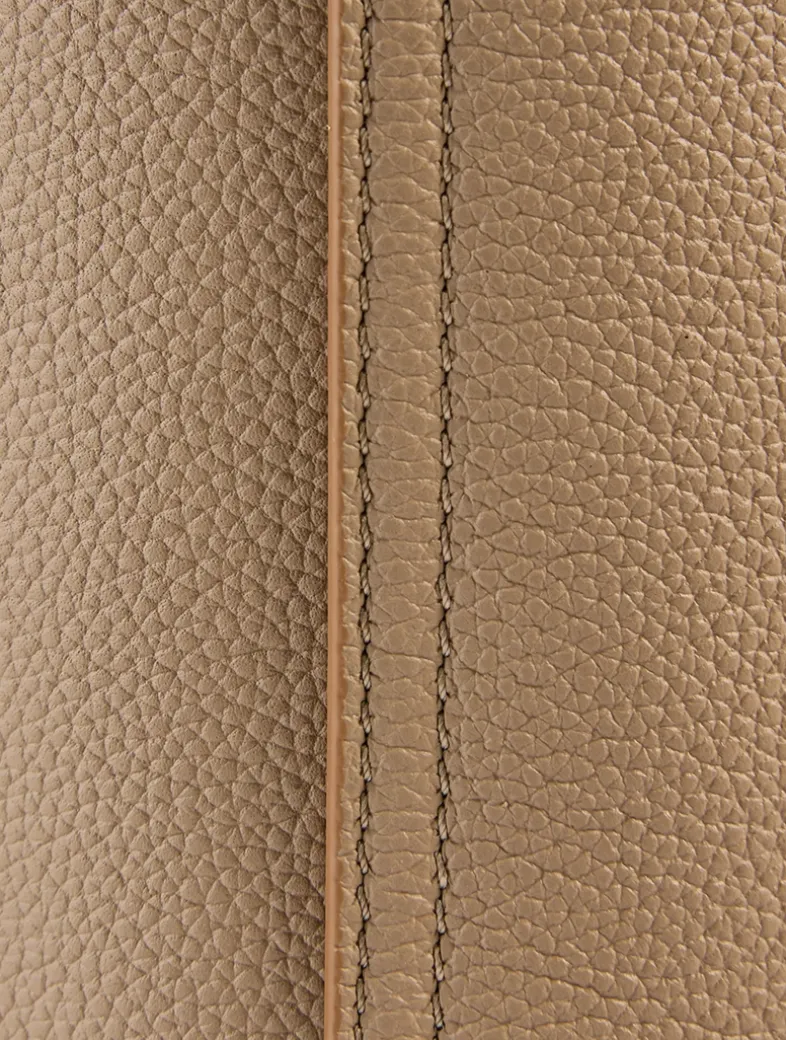 A novel and innovative bag silhouette, the Pebble combines pure minimalistic lines with a strong design statement. At once ornamental and functional, the signature Anagram-engraved hardware allows to adjust strap length and suit a number of carry styles. The distinctive twisted construction is complemented by subtle elevated details. This mini version is crafted in mellow calfskin with a bonded suede lining.