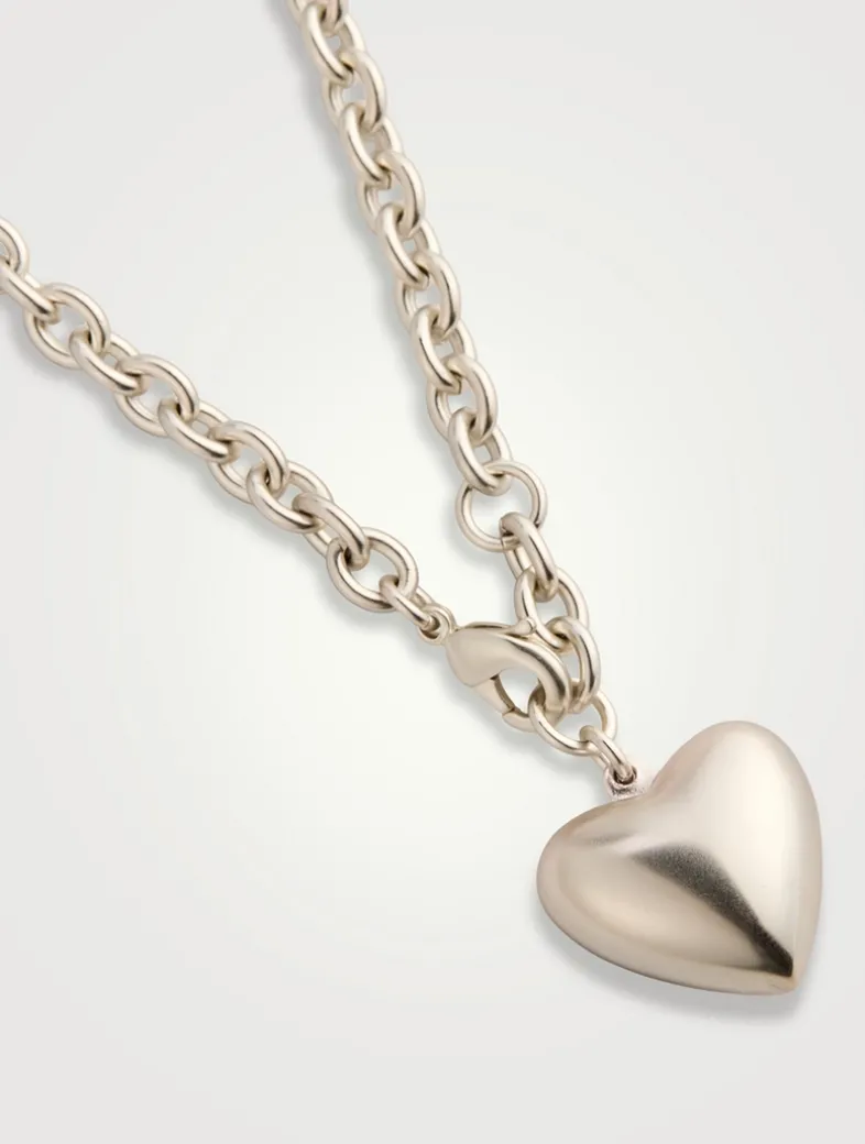 Enhanced with a silver-tone finish, this mini chain necklace is adorned with the brand’s signature puffy heart. The lobster closure can be adjusted to create a drop silhouette.