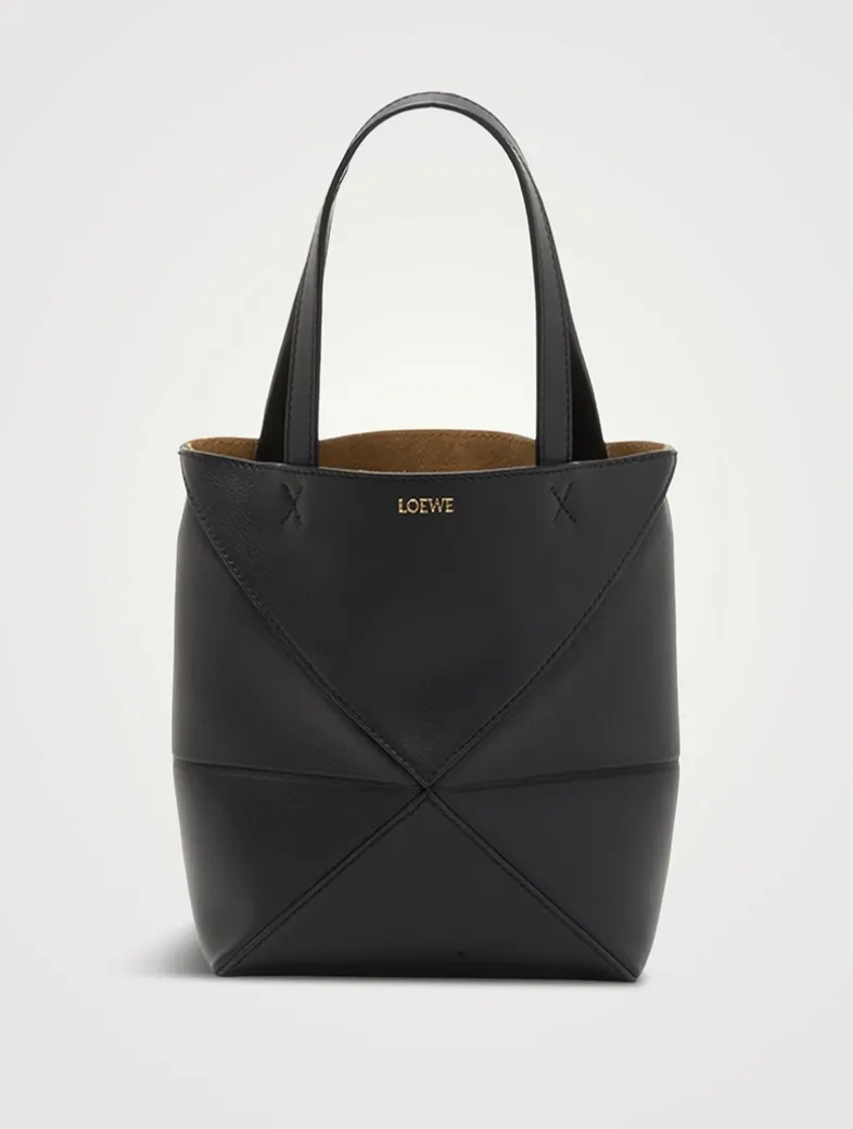 The Puzzle Fold Tote takes the iconic bag’s signature geometric lines and reimagines them in graphic and architectural panels that allow the bag to fold completely flat, making it the perfect travel companion. Soft, lightweight and inventively crafted, it is finished with discreet Loewe branding. This mini version is crafted in shiny calfskin with suede lining.