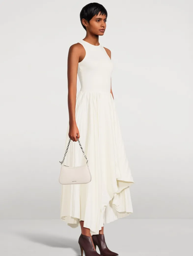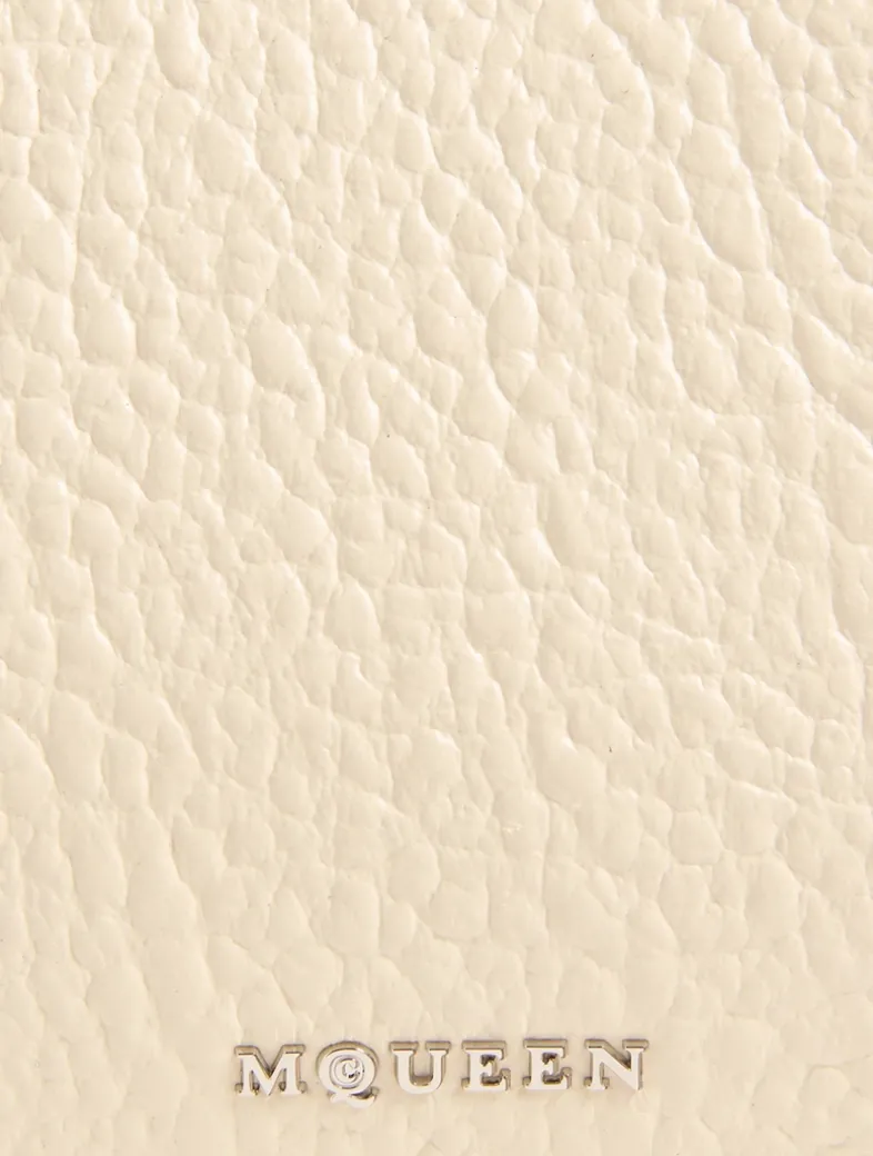 The McQueen T-Bar mini pouch has an elegant curved body in grainy lamb leather. Can be carried on the shoulder or in the crook of the arm by doubling up the metal chain strap ending with a signature T-Bar hook engraved with the McQueen logo. The bag has one central compartment and an internal card slot.