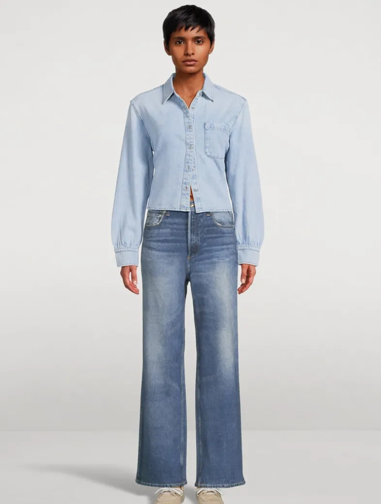 Miramar, rag & bone’s revolutionary printing technique, makes any material look like denim. These Shea pants are individually cut and sewn from cotton terry cloth that’s ultra-soft on the inside and printed on the outside to look like your favourite jeans. Featuring a relaxed, straight leg, the high-rise, full-length style further achieves its comfortable fit and feel with the other denim details digitally printed on the fabric.