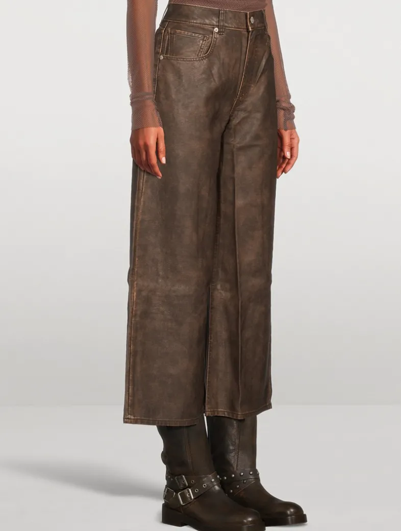 These pants from the We The Free collection features a vegan leather fabrication and loose barrel-leg silhouette. Cut to a mid-rise fit, it has a zipper fly and five-pocket styling.