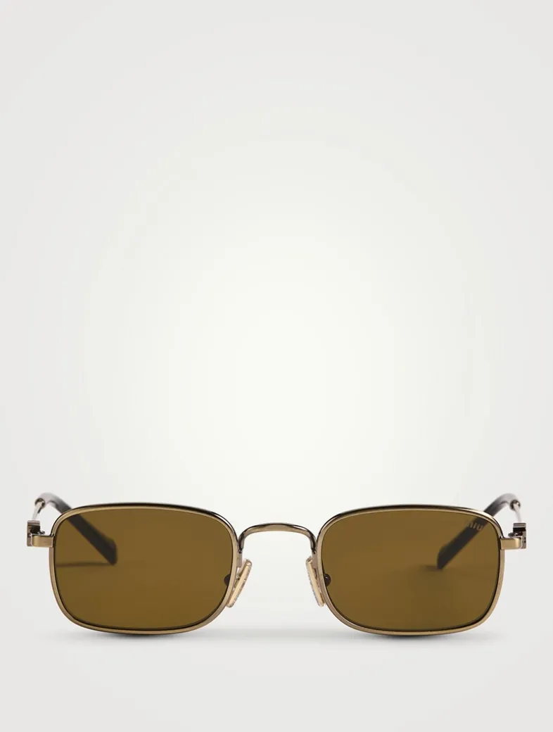 These metal frame sunglasses features square lenses highlighted by the thin rims. The vertical Miu Miu logo decorates the ultra-thin temples.