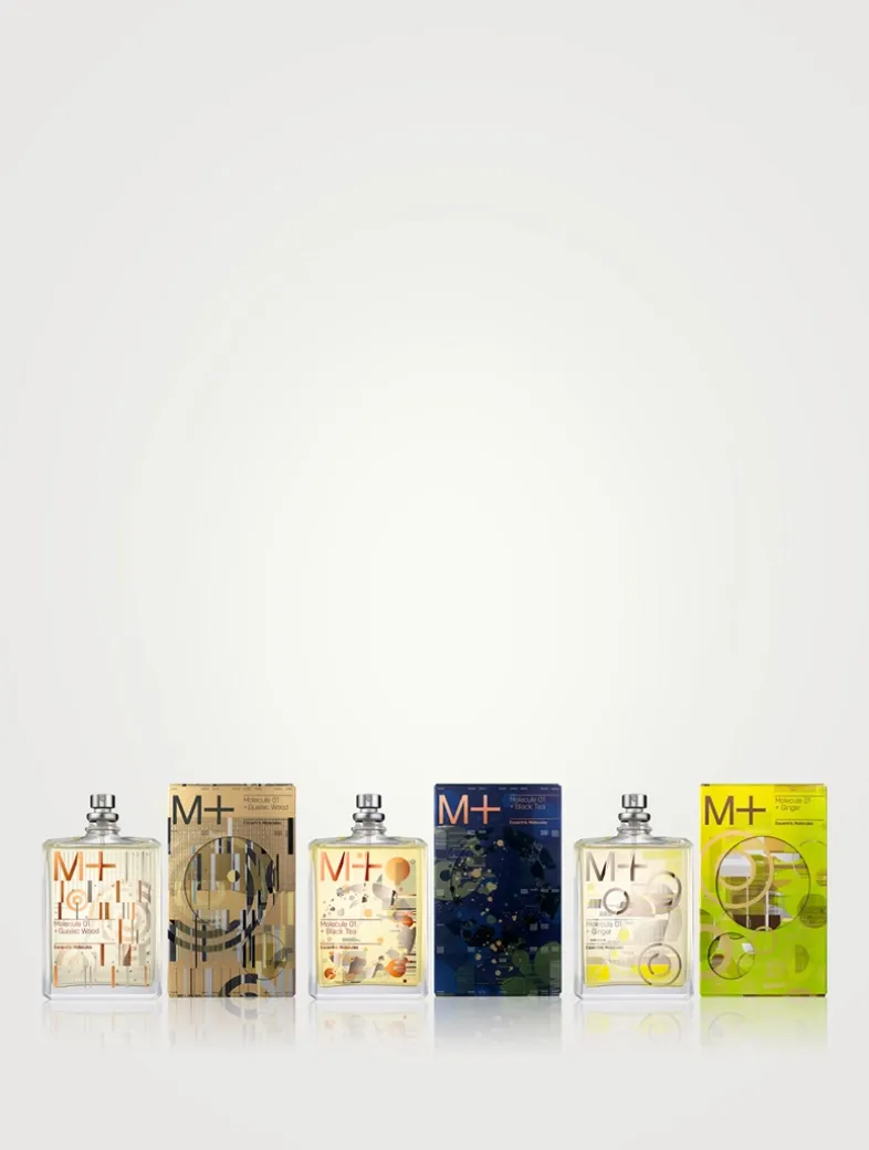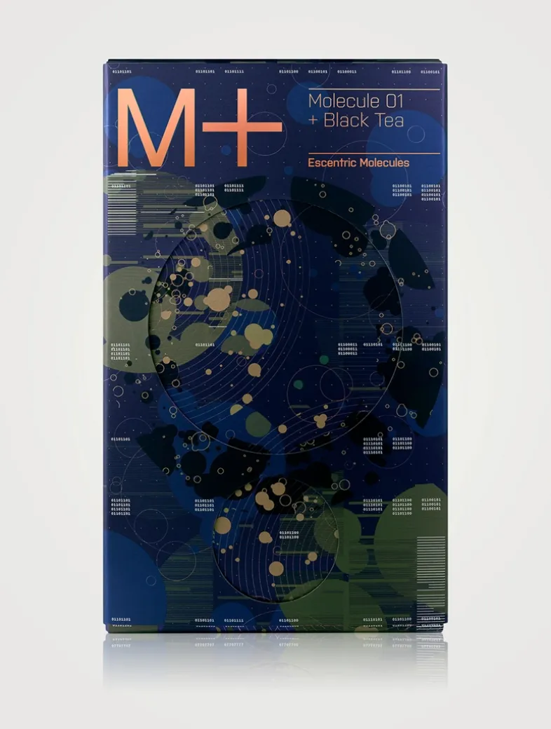 Molecule 01 is Iso E Super, a synthetic molecule with a cedarwood tonality and a velvety cocooning sensation. Black Tea is the dried leaves of the tea plant camellia sinenis, with a subtle and complex aroma.