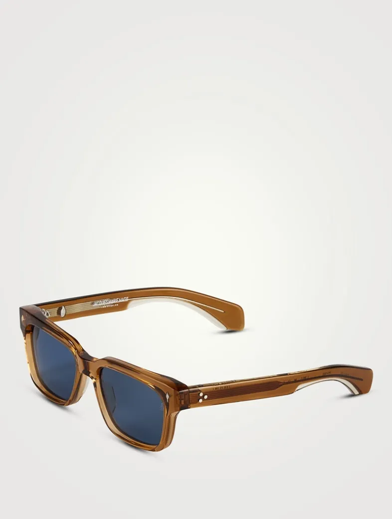 An iconic Jacques Marie Mage style, these rectangular ’60s-inspired glasses feature subtle beveling and the brands signature precious metal embellishments.