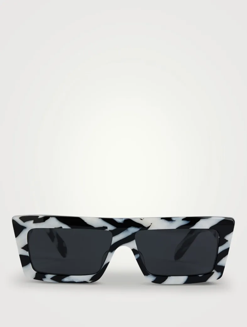 Bold and geometric, these rectangular sunglasses are finished with enameled logos on both temples.