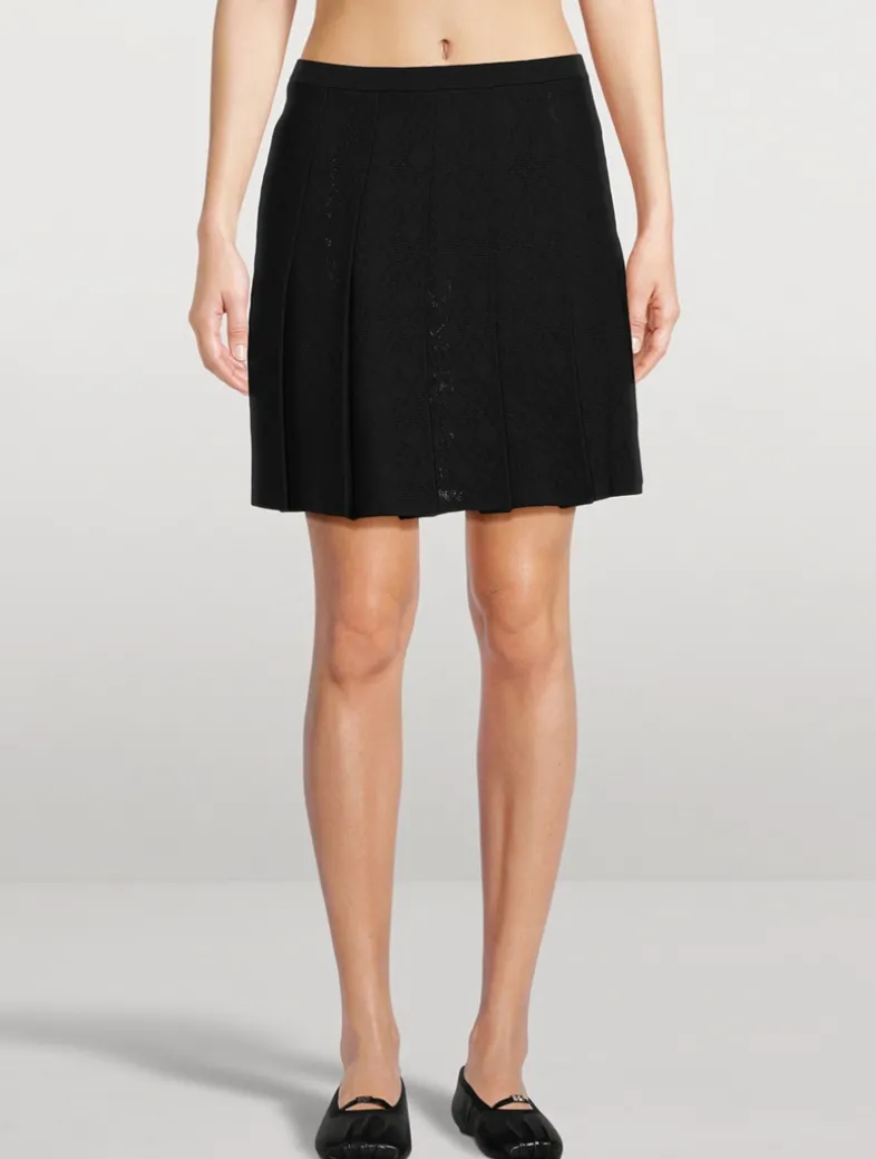Sporty yet sleek, this short pleated skirt is made from a stretch knit Monogram 72 jacquard.