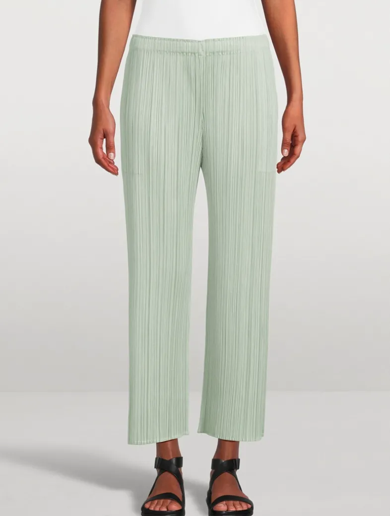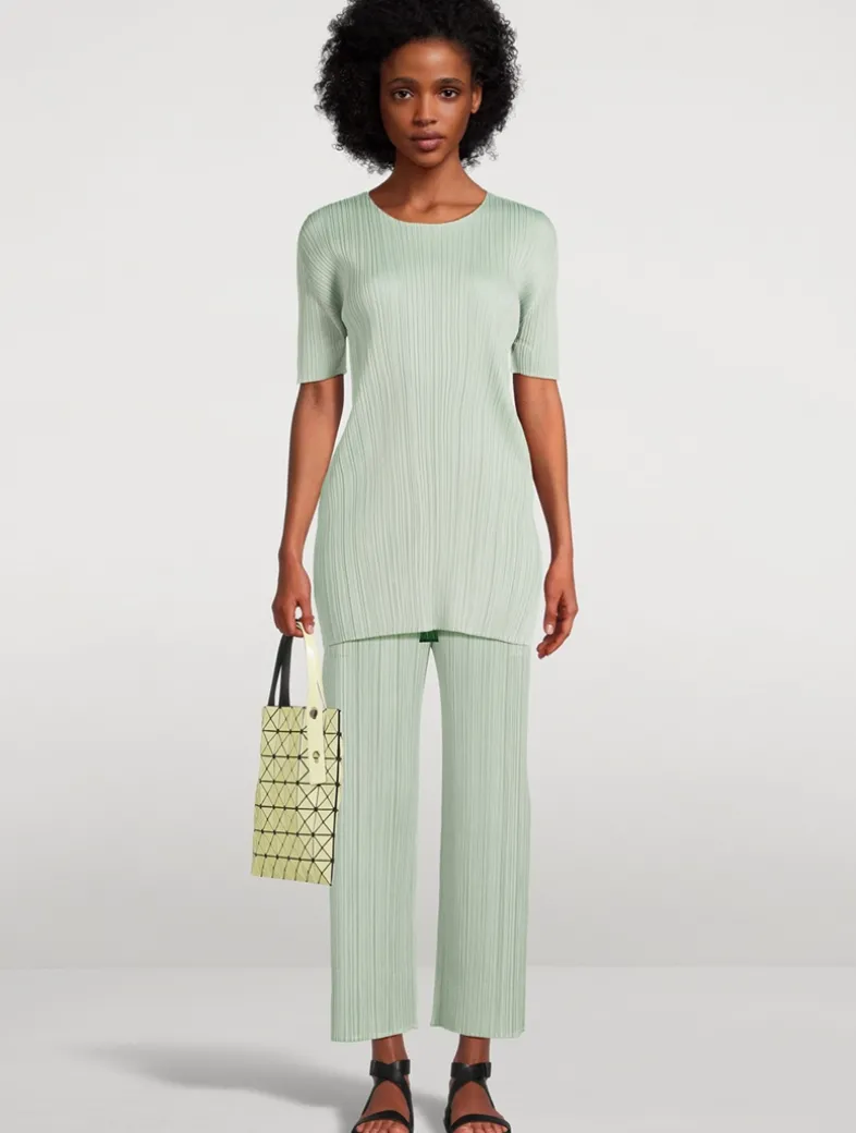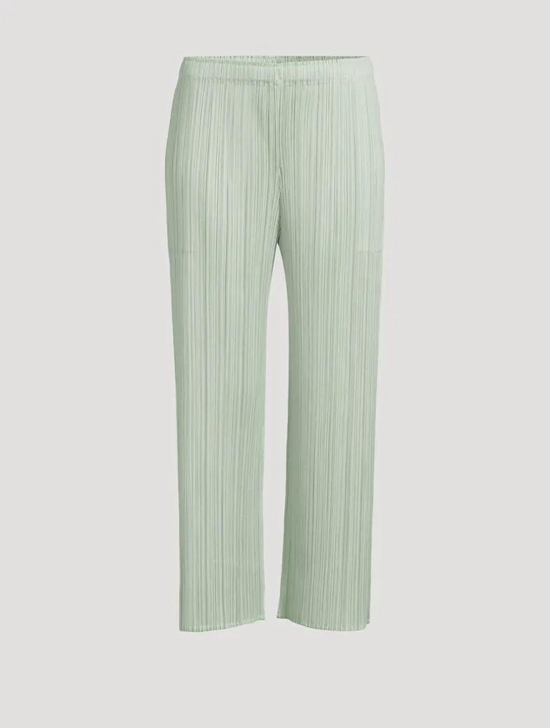 The June version of Pleats Please’s Monthly Colour collection features hues reminiscent of the gentle light of early summer. These elastic-waist pants have pockets on both sides.