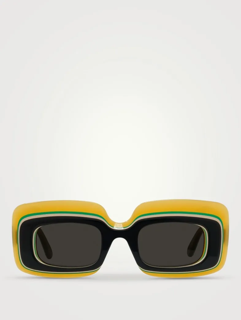 A layered, multicolour construction lends a vintage-inspired touch to these rectangular sunglasses. They are crafted in acetate with the LOEWE logo in a gold-tone finish on the arm.