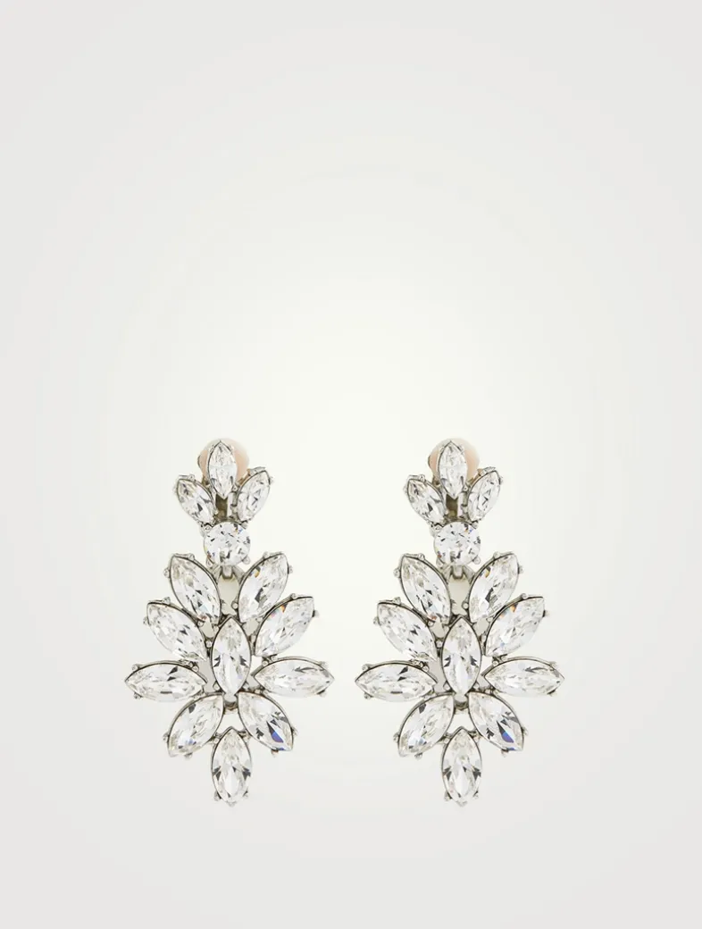 Framed in silver-tone metal, these clip-on earrings are skillfully prong-set with faceted crystals.