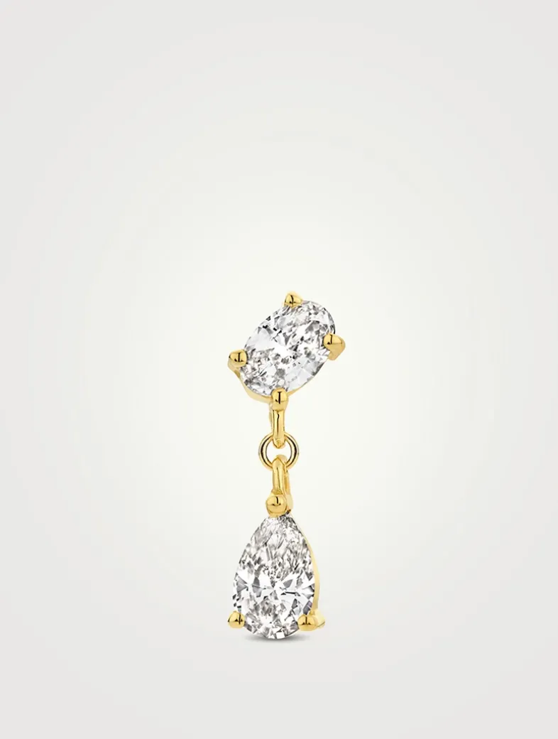 Pick a pear drop diamond earring and add on an oval shape stone. Made from 18k recycled gold, the Nemo earring features two brilliant lab grown diamonds and will bring shine and movement to any look.
