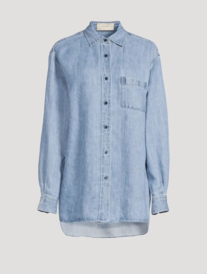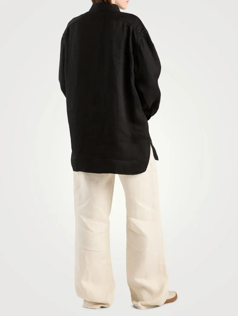 Made in Italy, this relaxed button-up shirt is crafted in soft linen denim. The long-sleeve top is designed with a front patch pocket, slim back yoke with side pleats, and exposed front placket with mother-of-pearl buttons.