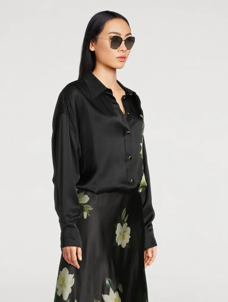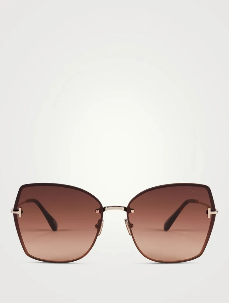 Made in Italy, these sunglasses feature oversized butterfly-style lenses that sit flush with the metal frame. Adorned with signature T inlays extending along the temples.