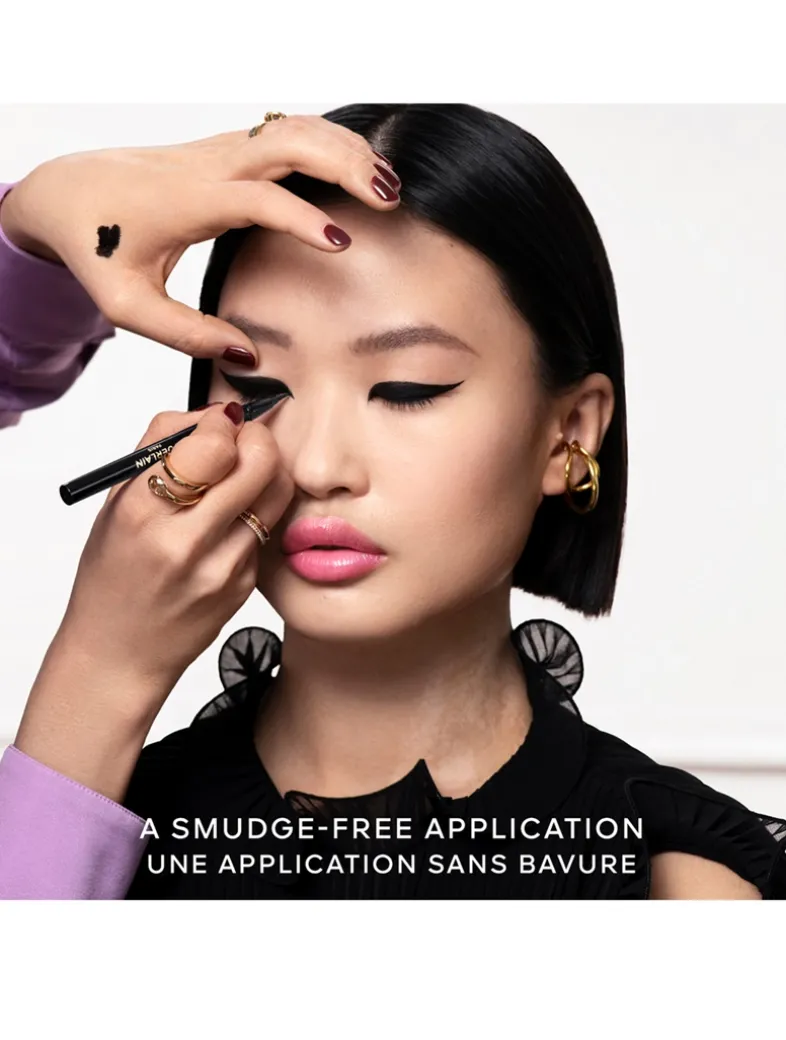 Thanks to its innovative formula infused with natural-origin charcoal, Noir G Graphic Liner creates an intensely matte finish with 24-hour hold. Its ultra-precise felt tip offers easy, buildable and smudge-free eyeliner application for a tailor-made graphic result of varying intensity as desired. “Lightly coat the tip of the eyeliner for a precise line. Achieve a perfect line with the help of a soft tape placed at the outer corner of the eye.