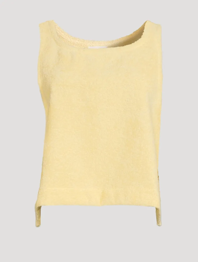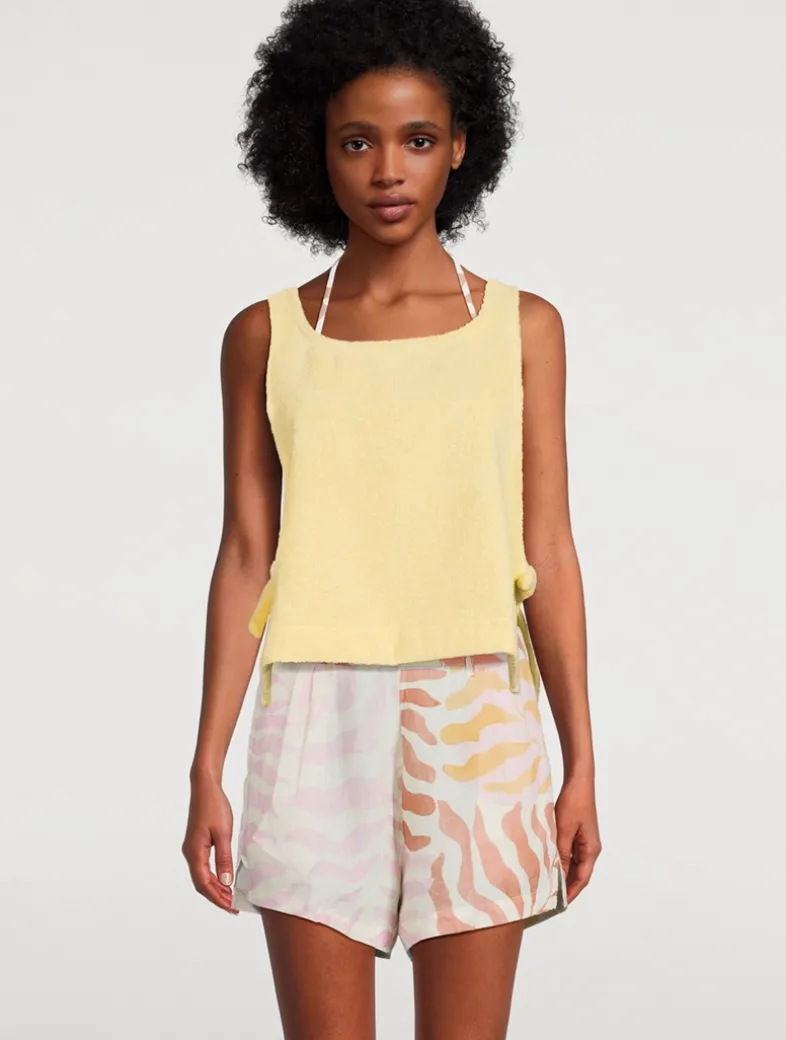 Timeless and understated, this terry cotton top has ties at side for a breezy fit. This product is made with recycled nylon yarns from pre- and post-consumer waste. OEKO-TEX certified.