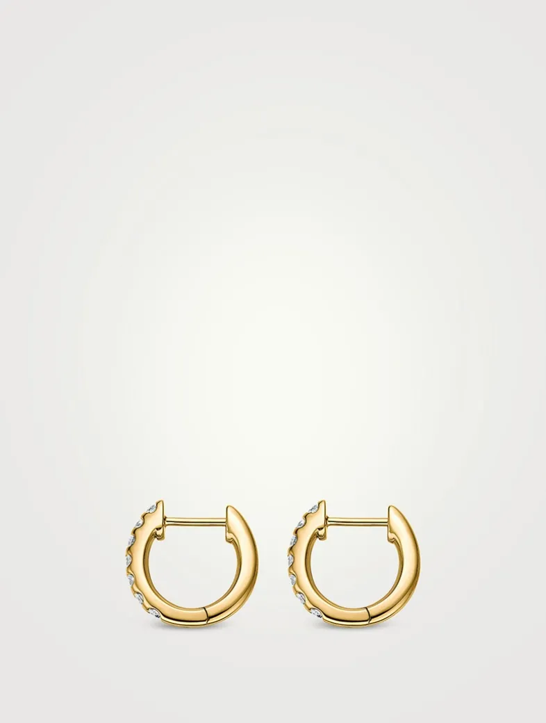 Expertly crafted in 18k gold, these V-shaped huggie hoops feature sparkling diamonds in flattened prong settings.