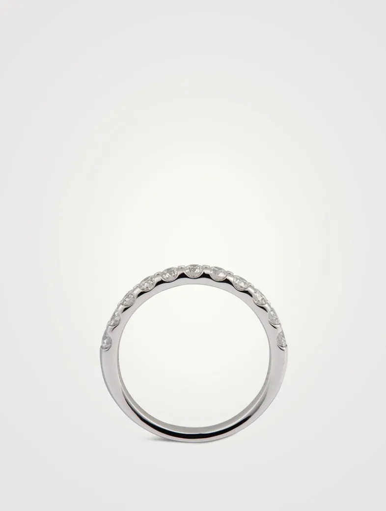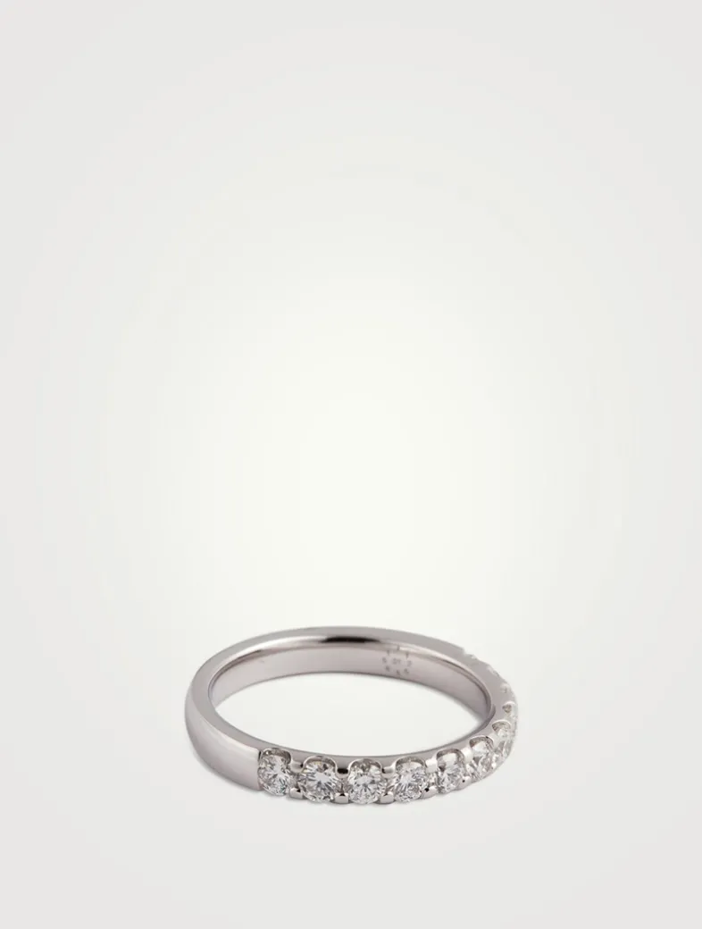 Cast in platinum, this exquisite band features 11 sparkling diamonds in polished prong settings.
