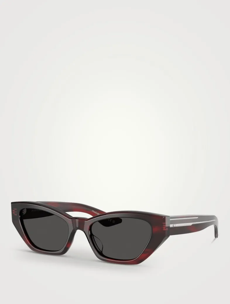 From the Oliver Peoples x KHAITE collection. Handcrafted in Italy, these sunglasses feature an upswept cat-eye shape, custom corewire on the temples inspired by KHAITE handbags, and dual pins for added strength and flexibility. This style is Rx-Able.